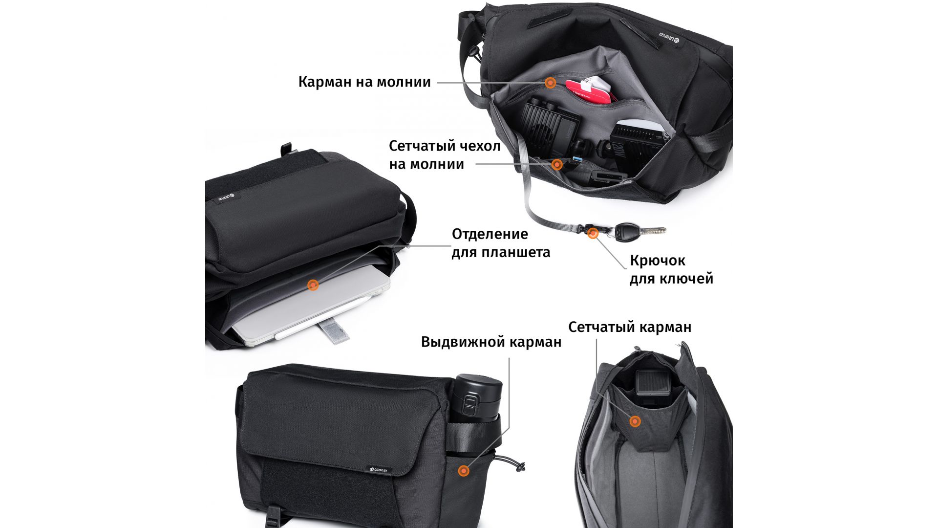 Продуманные отделения для мелочей и специальный слот для 11-дюймового планшета (вместе с чехлом и стилусом) помогают поддерживать аккуратность.