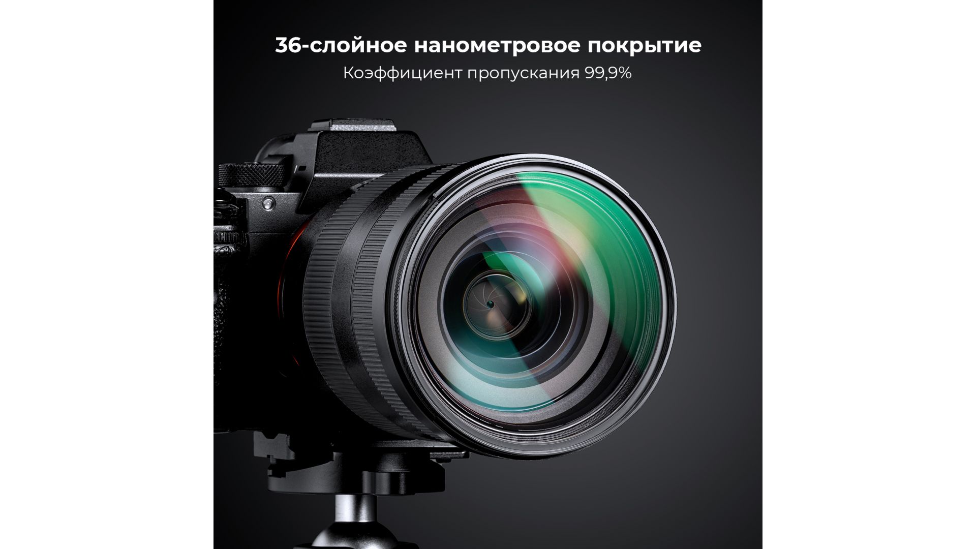 Стекло с нанометровыми покрытиями, водонепроницаемое и устойчивое к царапинам с обеих сторон, обеспечивает фильтру пропускание 99,9%, отсутствие изменения цвета и влияния на качество изображения.