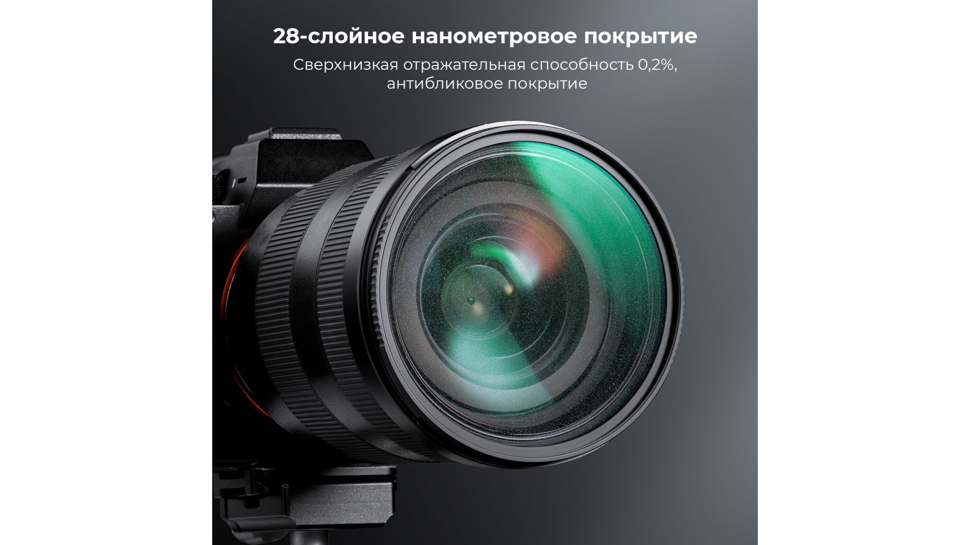 28-слойное нанометровое покрытие: обе стороны стекла оснащены нанометровыми покрытиями. Они обеспечивают пропускание фильтра и эффективно снижают отражение от фильтра.