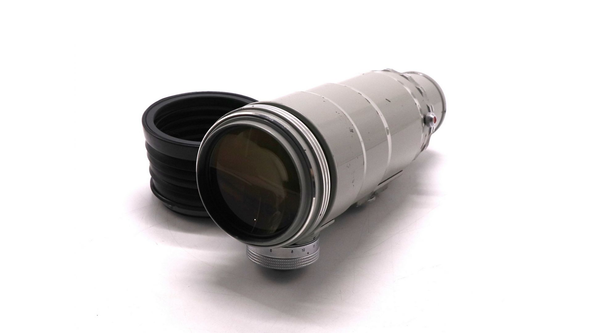 – Отличительные особенности: фокусное расстояние 300 мм, светосила f/4.5, байонет M42x1, белая отделка, механическая конструкция