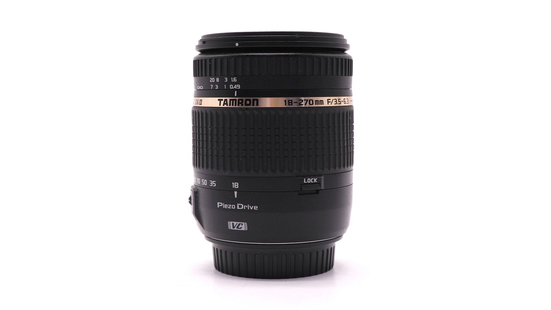 Tamron AF 18-270mm f/3.5-6.3Di II VC PZD (B008) for Canon - самый лёгкий и компактный стабилизированный универсальный ультразум объектив с 15-ти кратным коэффициентом масштабирования с первым ультразвуковым приводом автофокуса типа Piezo Drive от Tamron предназначен только для малоформатных цифровых зеркальных фотокамер формата APS-C/DX (и не подходит для полноформатных камер). Новый ультразвуковой мотор PZD использует принцип стоячей волны для выдвижения и поворота пьезоэлемента по эллептической траектории с помощью энергии высокочастотных колебаний. В обычных кольцевых ультразвуковых моторах USD (или USM) используется принцип бегущей волны для поворота дуги окружности. Использование пьезоэлектрического привода позволяет уменьшить габариты объектива.