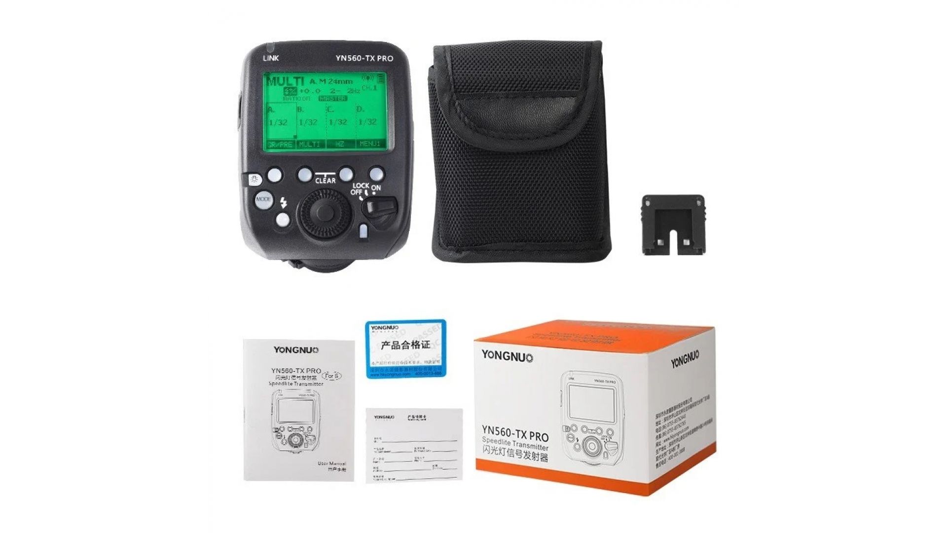 YongNuo YN560-TX PRO - это трансмиттер для фотовспышек, являющийся продвинутой версией YN560TX II с поддержкой TTL и высокоскоростной синхронизации, чей радио протокол позволяет добиться кросс-платформенной совместимости. YN560-TX PRO может управлять настройками и запускать вспышки серий YN200, YN862 и более ранние модели YN622C(N) II, YN685, YN968C, YN968N(II) (в режиме 560RX), при условии обновления на новейшую версию программного обеспечения.