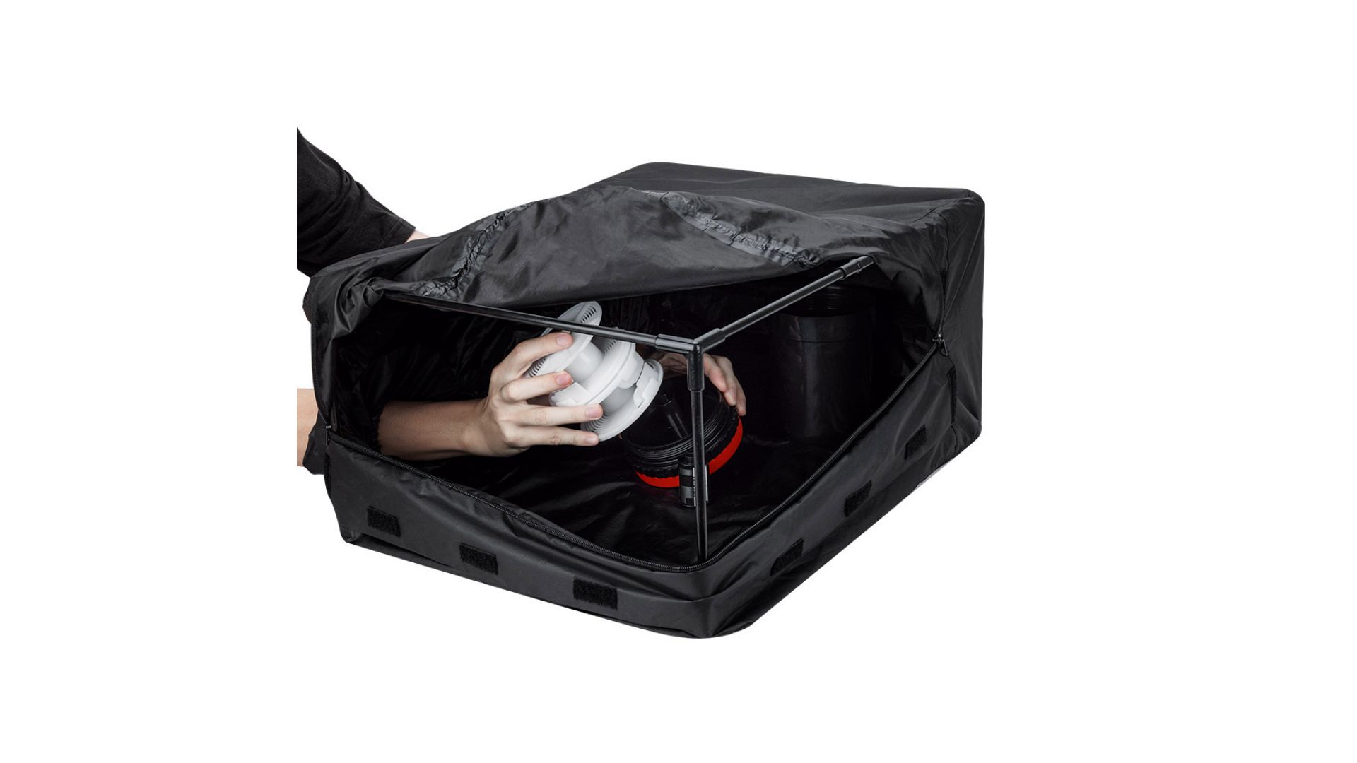 Двойные эластичные манжеты рукавов плотно облегают руки любого размера, блокируя доступ света. В комплекте идут антистатические перчатки и удобный чехол для хранения.