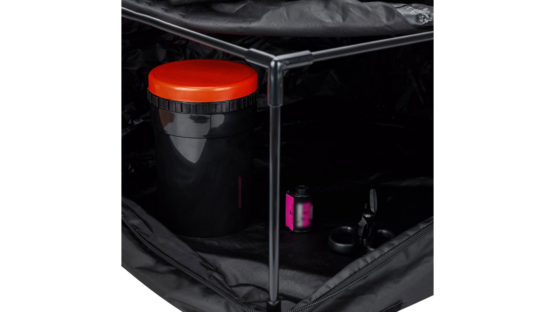 Изделие сшито из высококачественной двухслойной светоблокирующей ткани. Швы термообработаны и усилены, что гарантирует полную светонепроницаемость и защиту плёнки от засвечивания. Внутренний каркас из стекловолокна легко собирается без инструментов, обеспечивая достаточно пространства для работы.