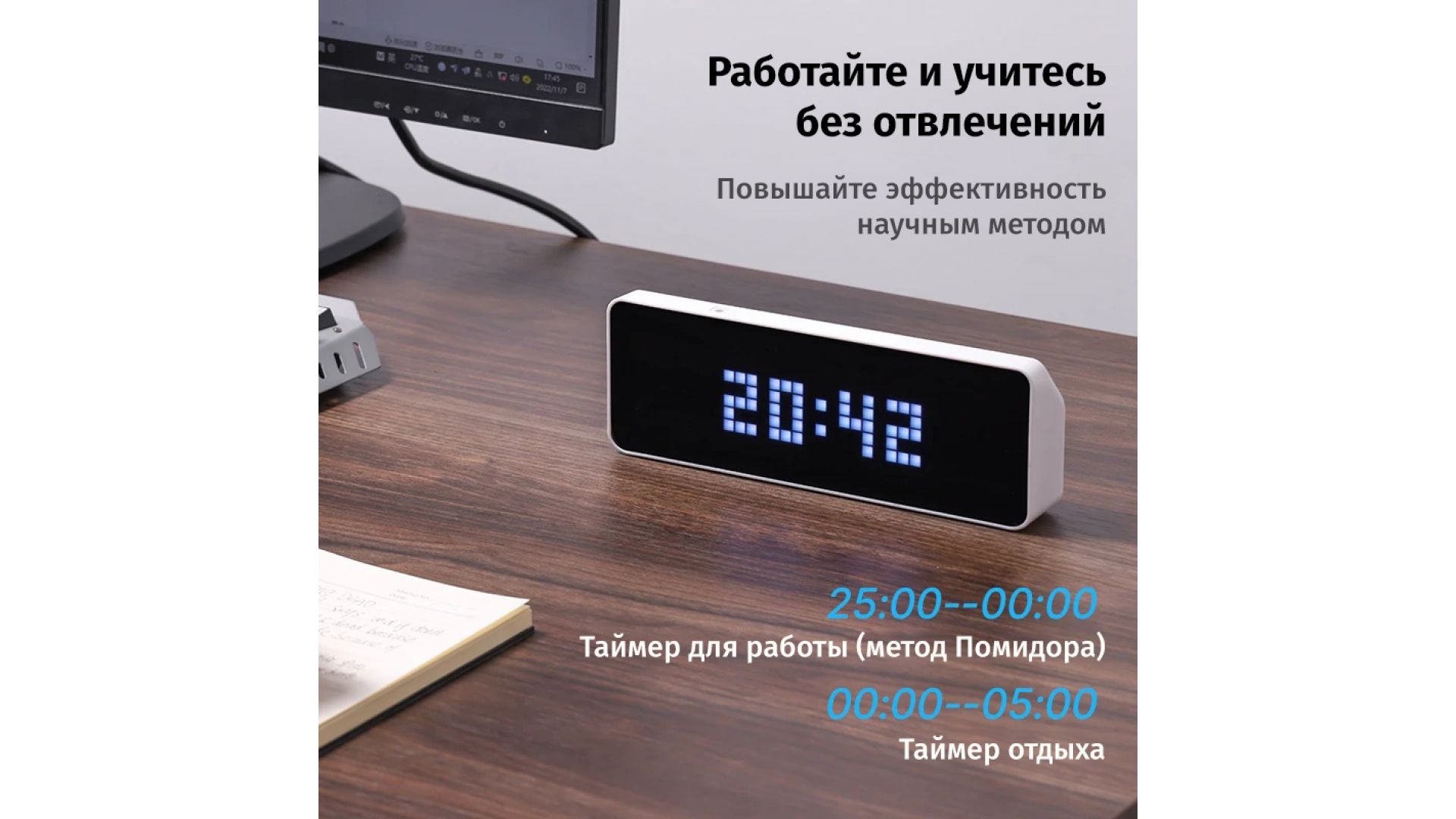 Настольные часы Ulanzi TC001 - стильный и функциональный гаджет с ретро-дизайном и ярким светодиодным экраном. Крупные пиксели создают четкое изображение, отображая время, дату, погоду и другую важную информацию. Идеальный выбор для дома, офиса или бизнеса.