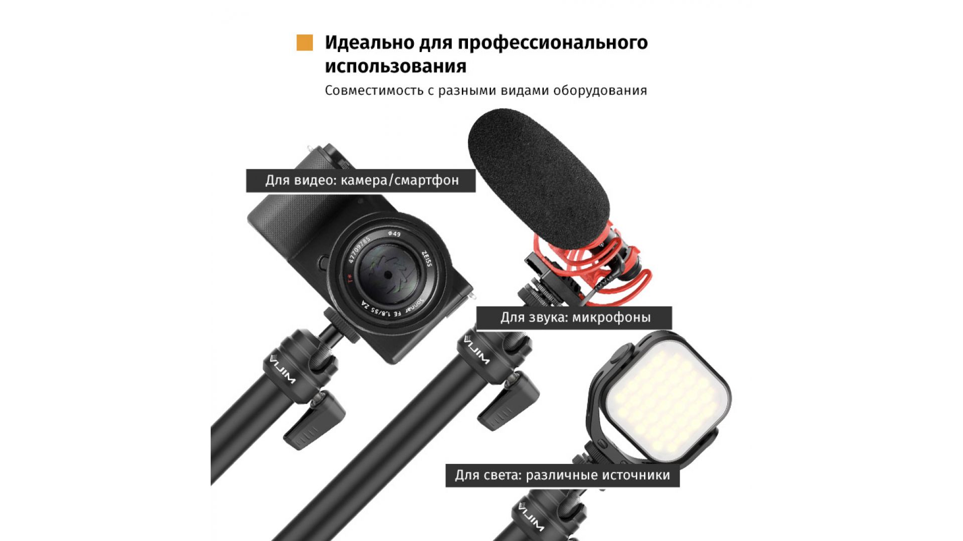 Ulanzi VIJIM LS08 – компактный и функциональный комплект из трёх кронштейнов, расширяющий возможности стойки для съёмки на рабочем столе. Идеально подходит для крепления небольших камер, светильников, микрофонов и других устройств.