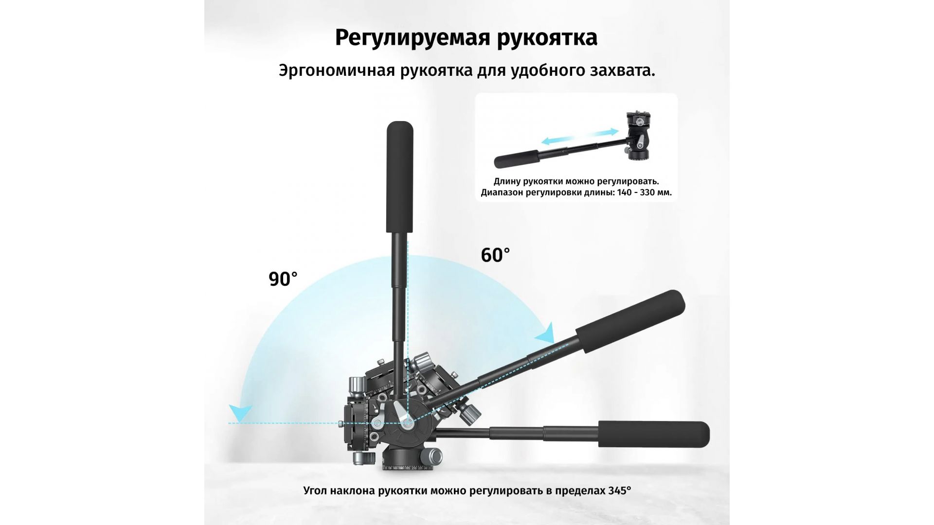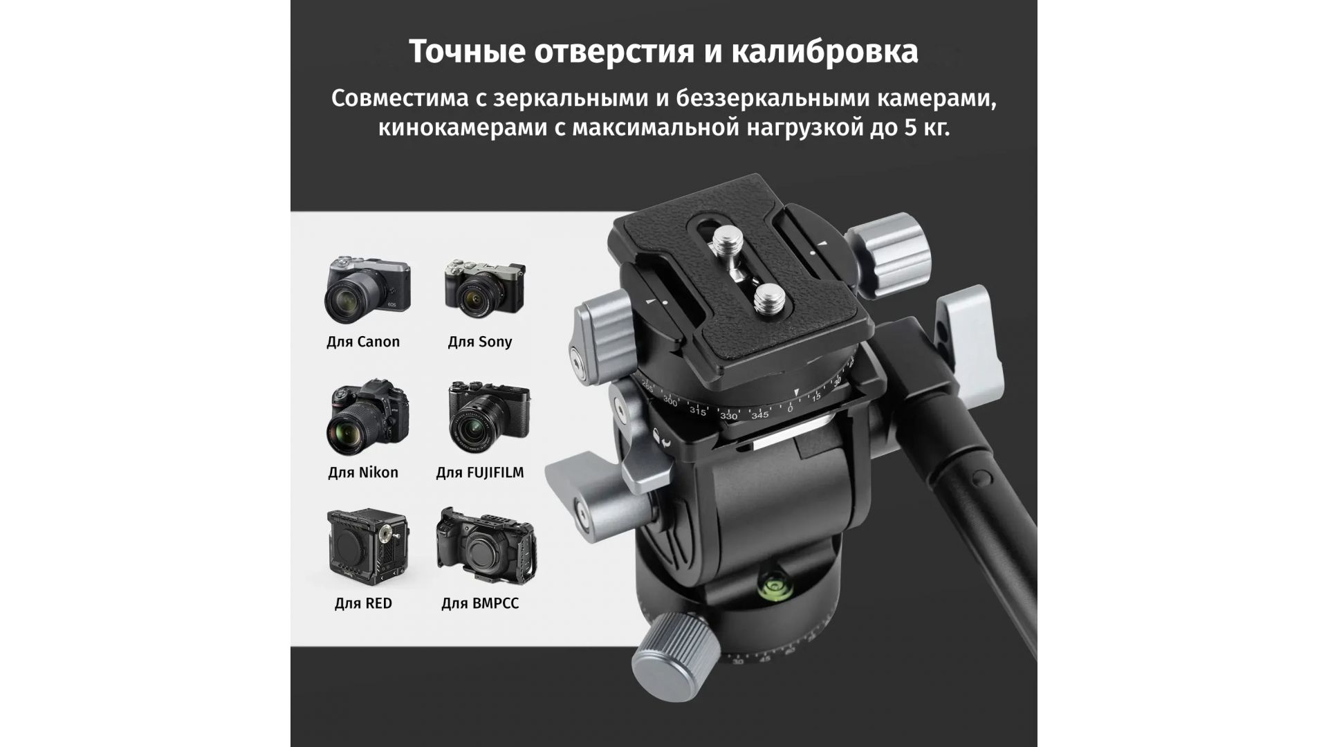 · Регулируемый центр тяжести: легко адаптируется под различные объективы с регулируемым центром тяжести.