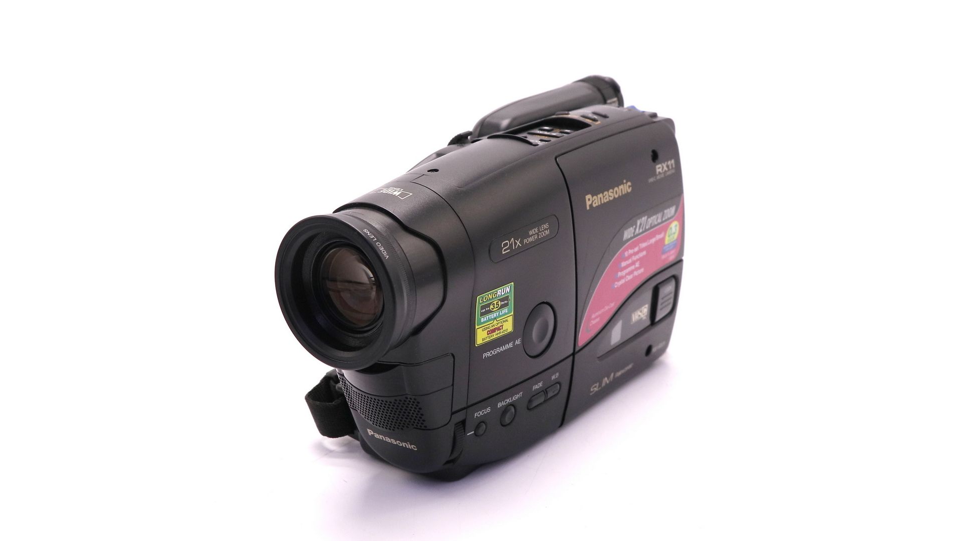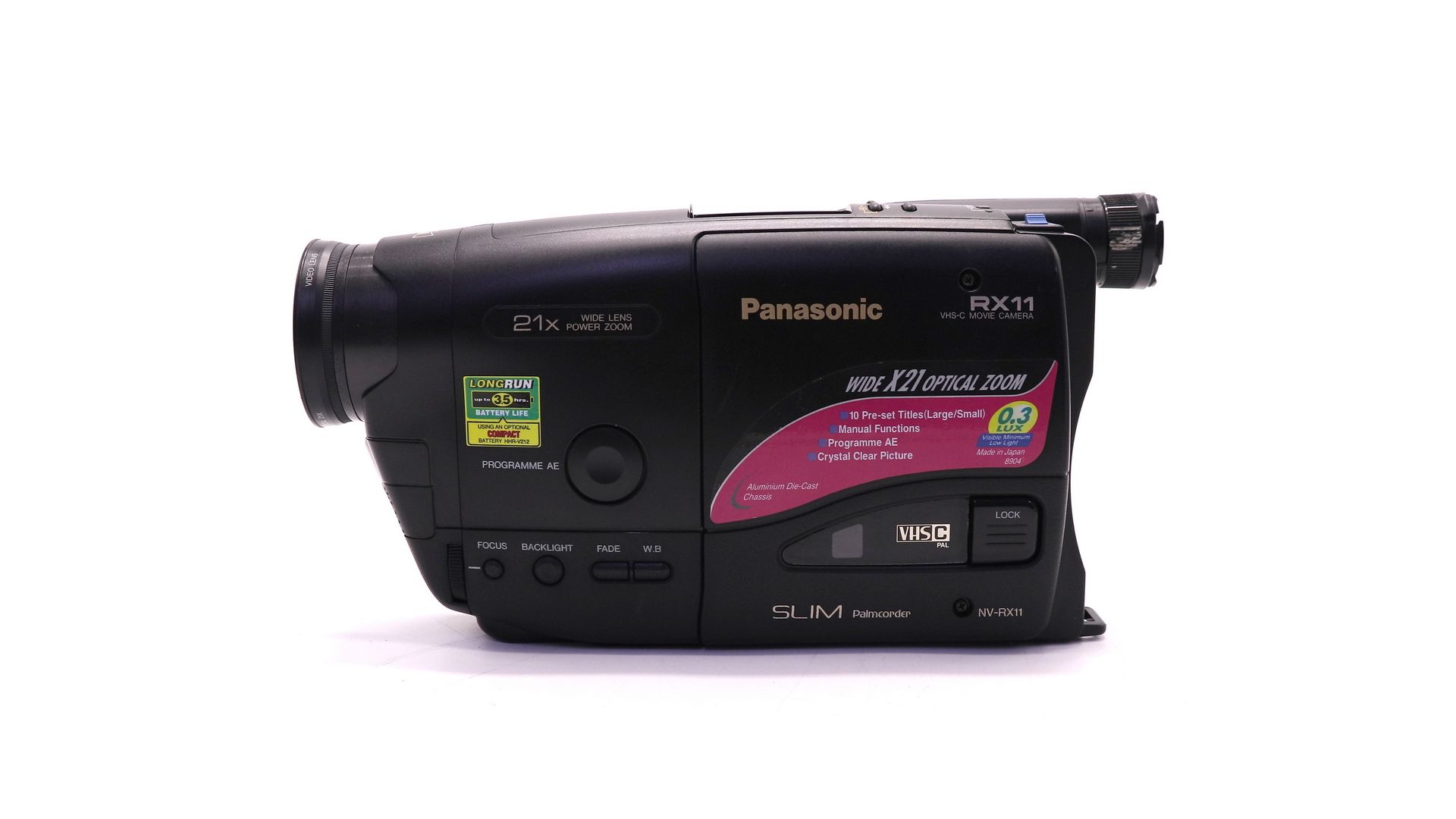 – Отличительные особенности: формат PAL, 21x оптический зум, запись на кассеты E-60, электронный видоискатель 0.5"
