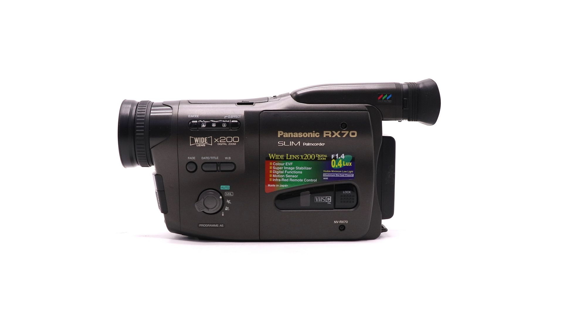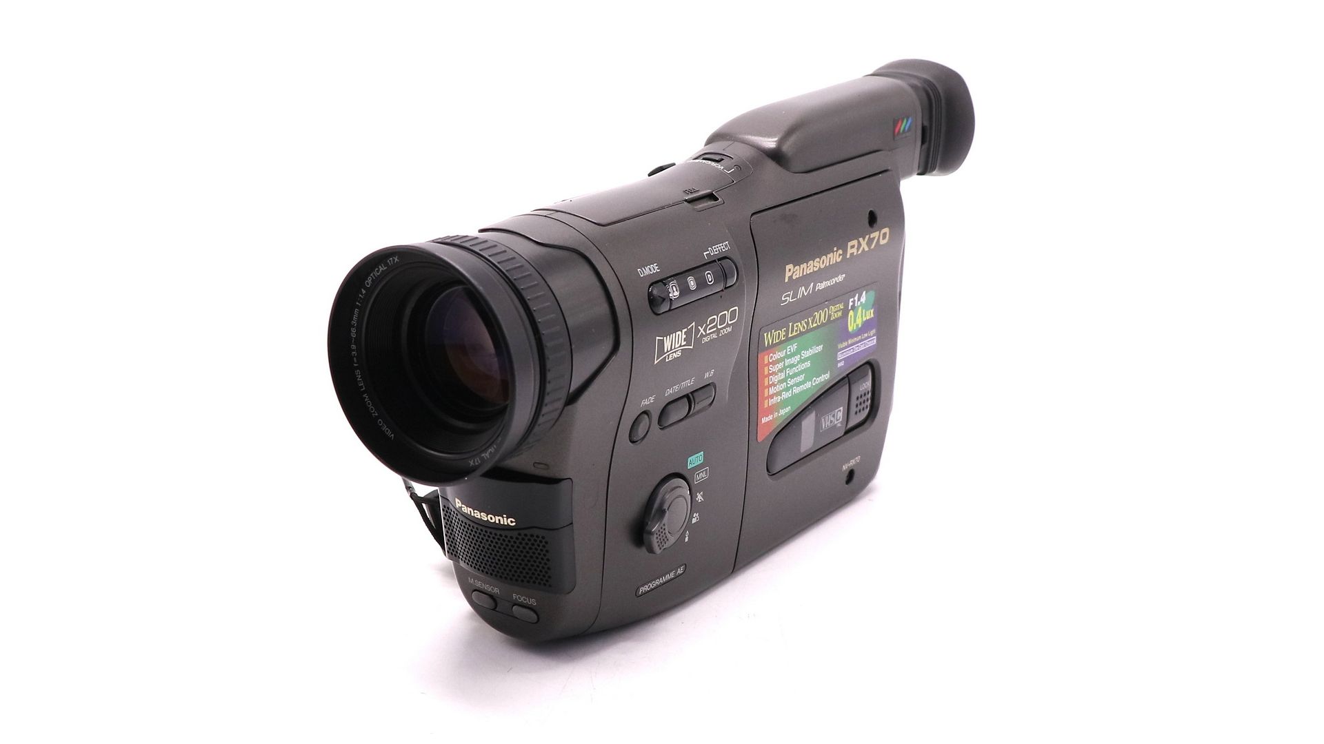 Panasonic NV-RX70EN — аналоговая видеокамера формата VHS-C. Она сочетает в себе широкий диапазон зума, светосильный объектив и разнообразные функции для творчества. Подходит для любительской съёмки, путешествий и создания ретро-контента.