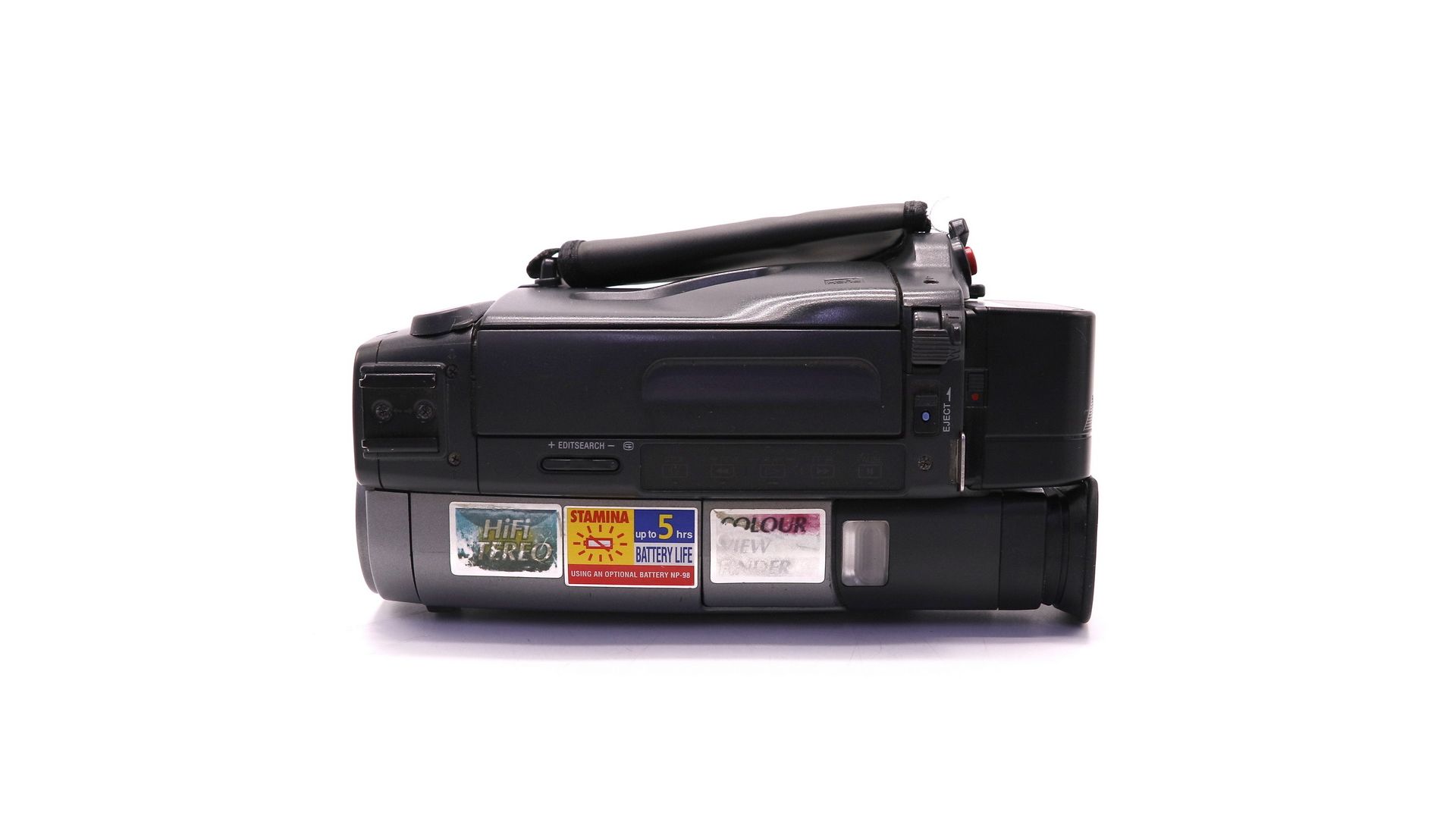 Система видеозаписи -две вращающиеся головки, наклонно-строчная развертка, система ЧМ. Система аудиозаписи - вращающиеся головки, система ЧМ. Видеосигнал - цветовой сигнал PAL, стандарт по МККР. Время записи/воспроизведения - режим SP: 1 час и 30 минут, режим LP: 3 часа. Время перемотки вперед/назад приблизительно 5 мин. Видеовыход, аудиовыход, RFU DC OUT, гнездо управления LANC, гнездо MIC. Кассеты 8-мм видеоформата (стандарт 8мм).