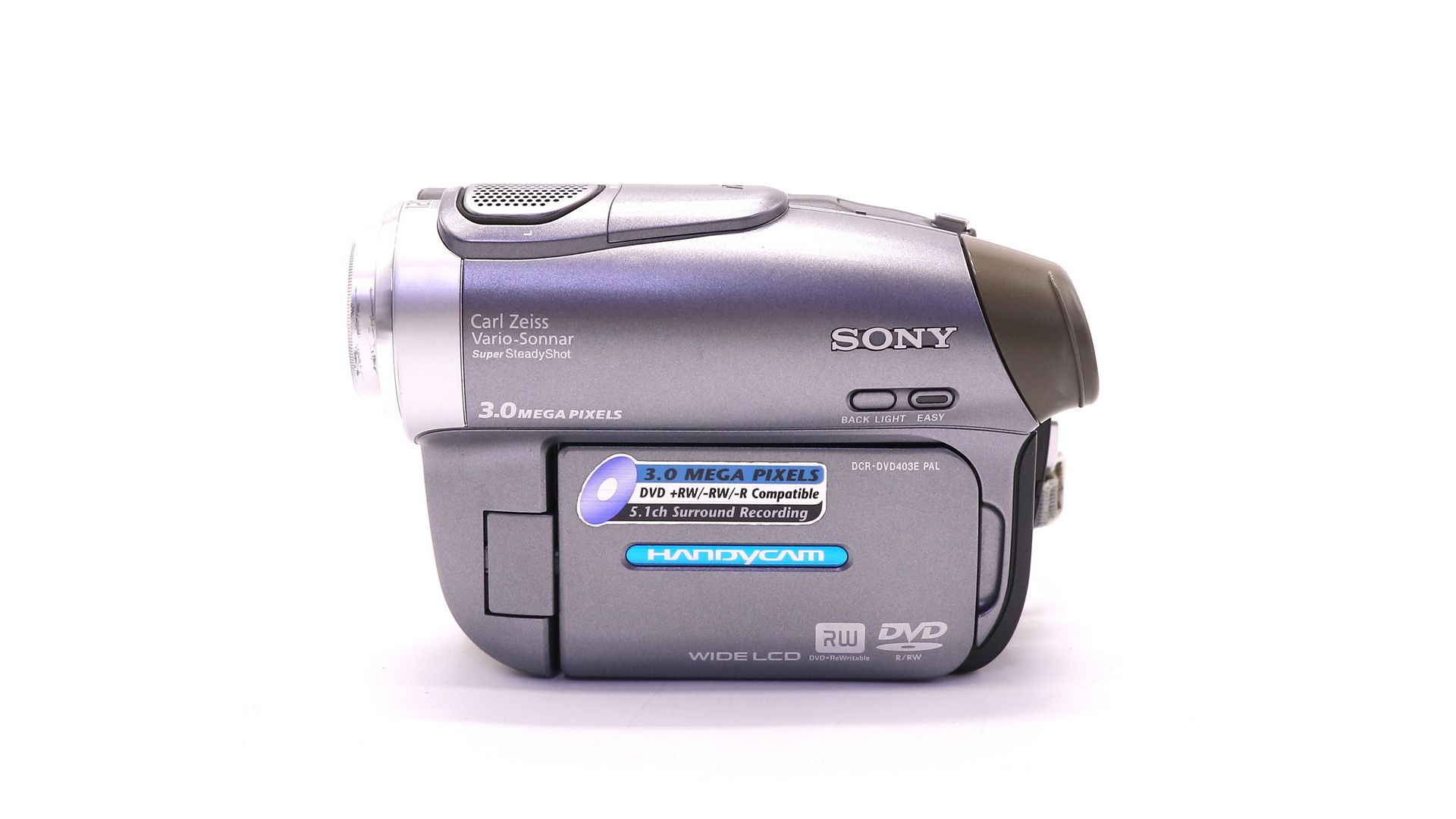 3-х мегапиксельная и широкоэкранная видеокамера всегда готова к записи в широкоэкранном режиме 16:9 и к записи 5,1-канального объемного звучания. Камера очень удобно располагается в руке средних размеров, все кнопки, необходимые для управления камерой при съемке, расположены под большим и указательным пальцами. Камера снабжена объективом Carl Zeiss, 2,7 дюймовым гибридным ЖКД. Обеспечивает высококачественные видеоизображения и фотографии.
