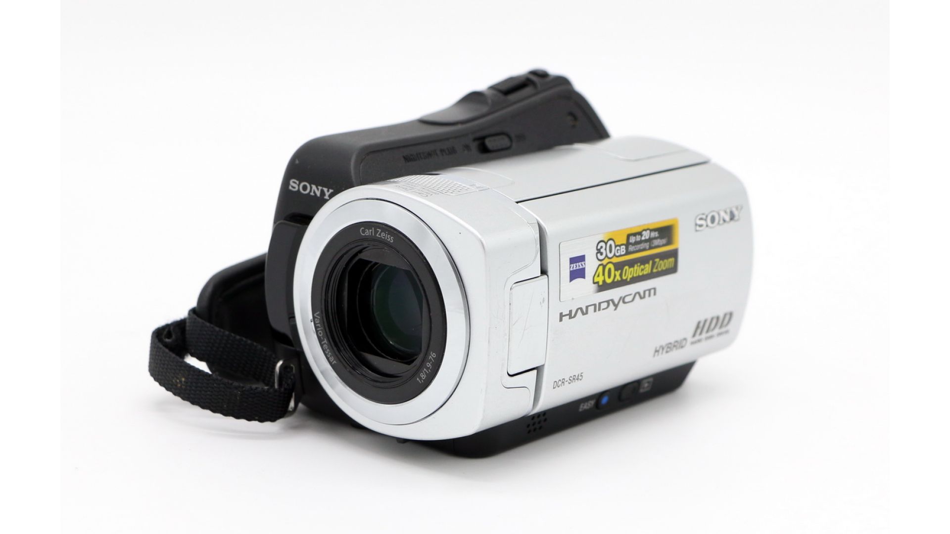 Видеокамера с объемом жесткого диска 30 ГБ позволяет записать до 15 часов видео в формате Standard Definition. Традиционно, устройство использует оптику Carl Zeiss Vario-Tessar. DCR-SR45Е оснащена 2,7-дюймовым ЖК-дисплеем, 40-кратным оптическим зумом и 0.8-мегапиксельным CCD-сенсором. Встроенный вариомикрофон автоматически присоединяет звук к изображению, а функции "индекс по лицам" и "индекс по пленкам" упрощают поиск. Sony DCR-SR45E компактна, удобно сидит в руке, отличный помощник в записи знаменательных моментов в жизни.