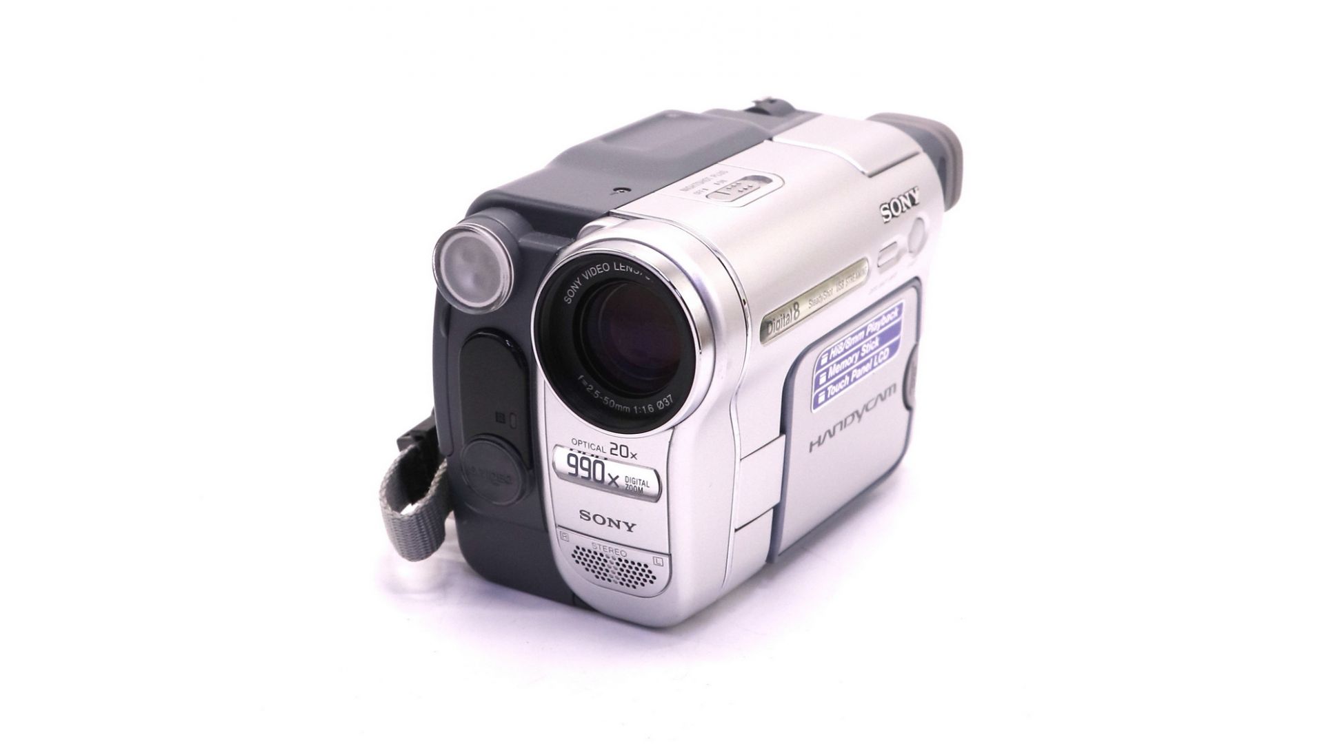 Надёжная аналоговая видеокамера Sony формата Hi8/Video8 с мощным 20-кратным оптическим зумом и высокой светосилой. Классика домашнего видеосъёмки начала 2000-х.