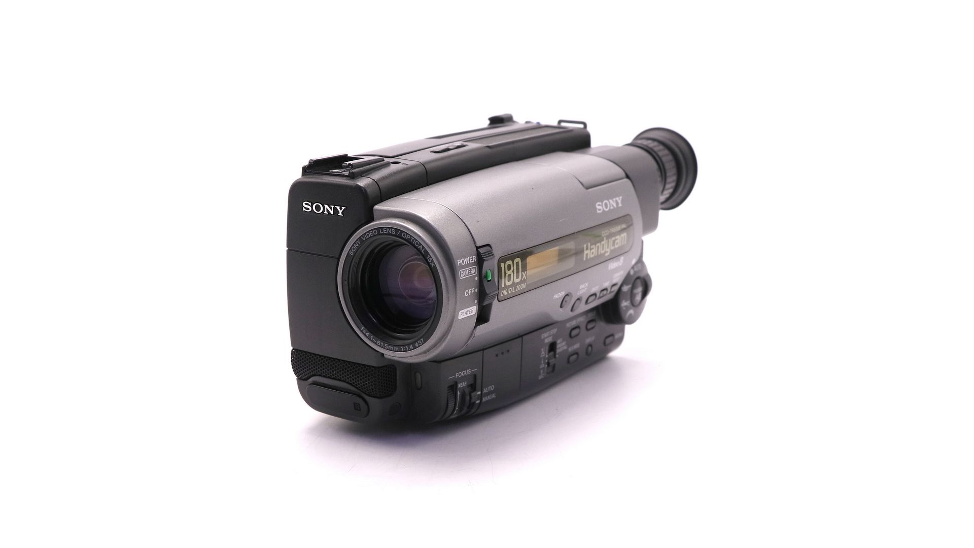 CCD-датчик обеспечивает чёткое и насыщенное изображение. Объектив с переменным фокусным расстоянием позволяет снимать широкие планы и крупные кадры. Запись в SP и LP качестве на кассеты 8мм/8xr, цифровой зум до 180× для максимальной детализации.
