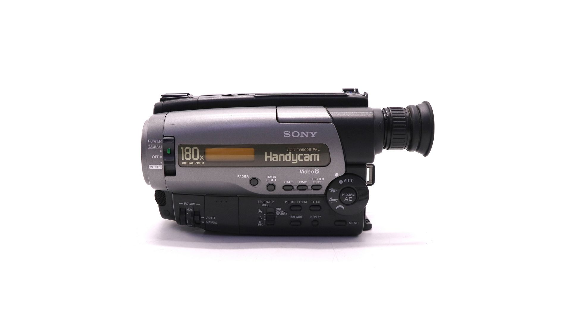 Sony Handycam CCD-TR502E — компактная видеокамера конца 1990-х, которая сочетает портативность и простоту использования, идеально подходящая для домашних видеозаписей и коллекционеров.