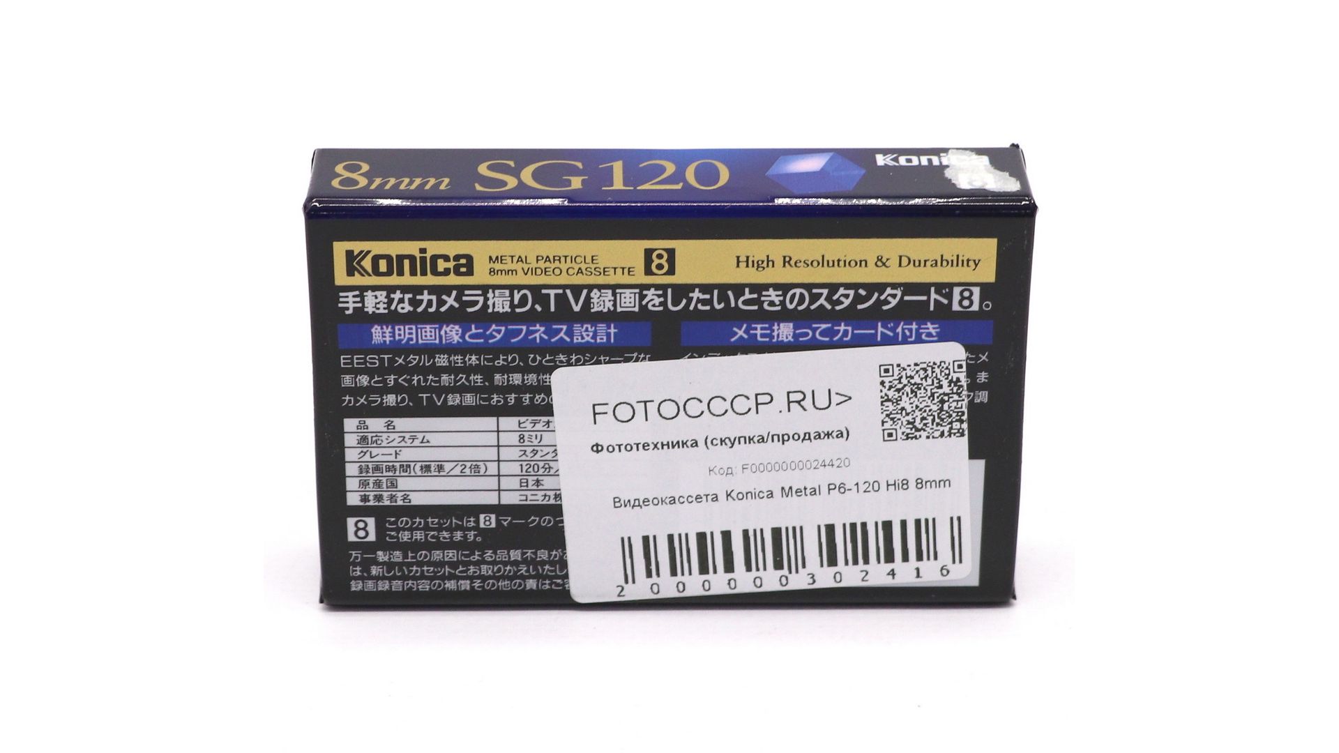 – Отличительные особенности: высококачественная кассета формата Hi8 от бренда Konica. Обеспечивает чёткое изображение (до 400 ТВ‑линий) и чистый звук. Металлический тип ленты гарантирует повышенную износостойкость и долговечность записей.