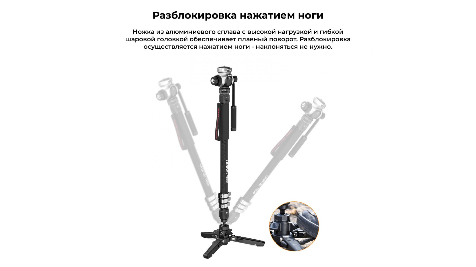 шаровой головкой обеспечивает плавный поворот. Разблокировка осуществляется нажатием ноги - наклоняться не нужно.