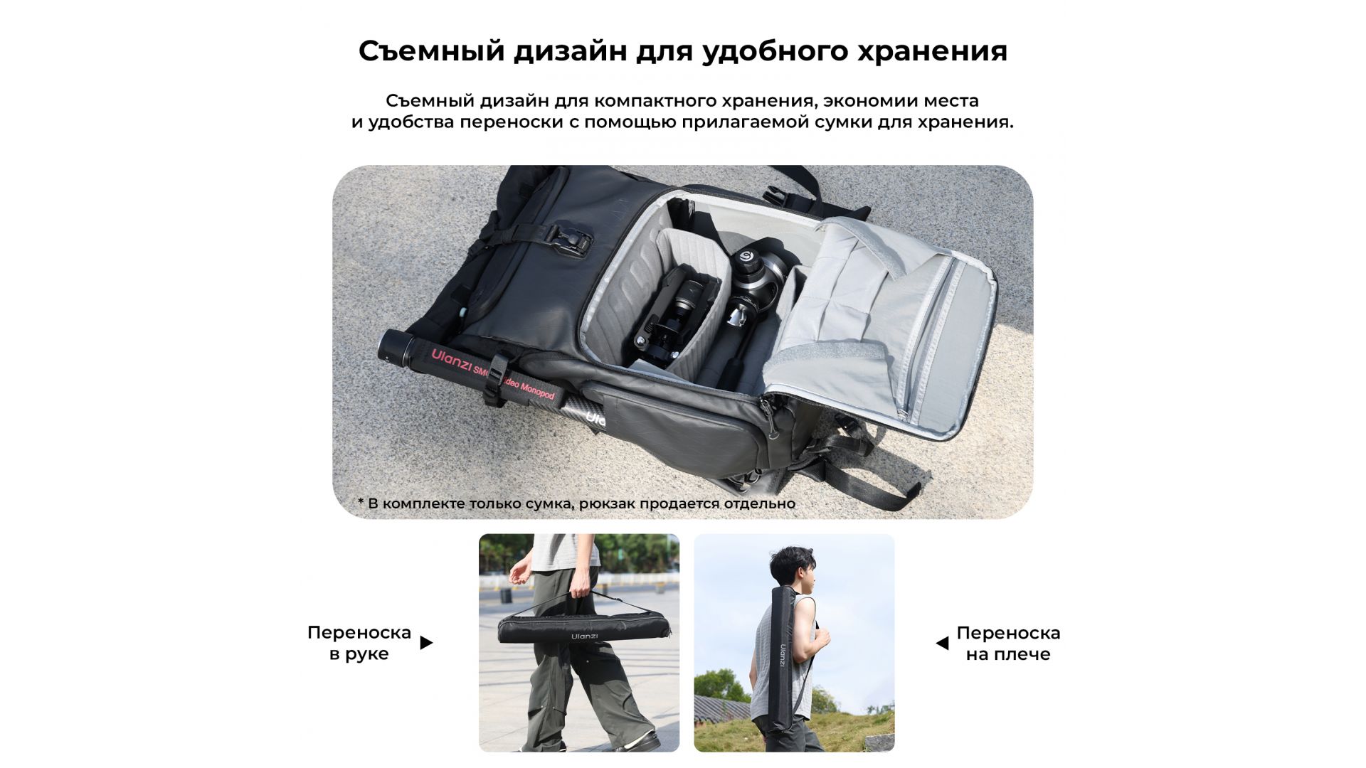- В комплект входит сумка для удобства хранения монопода