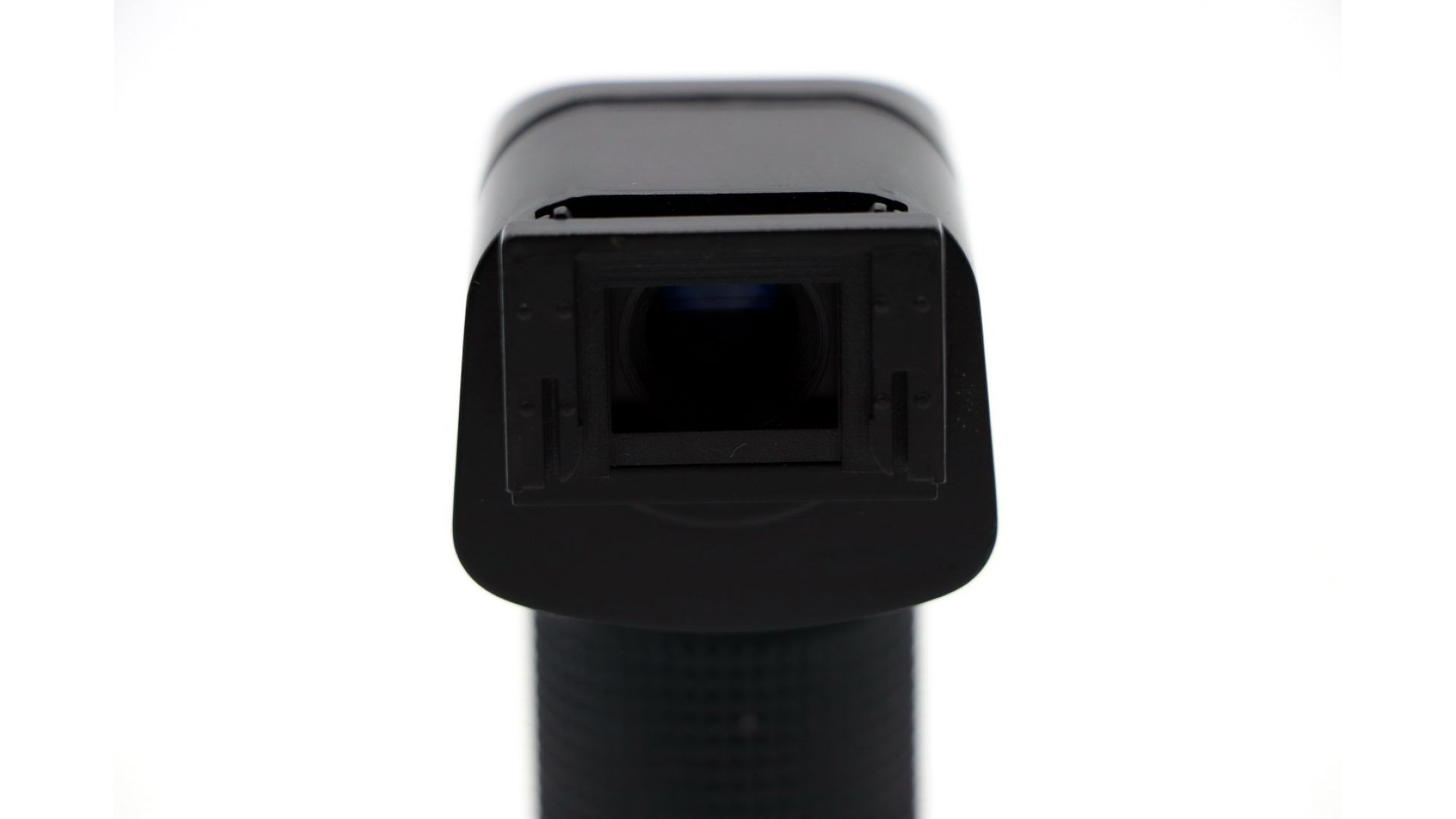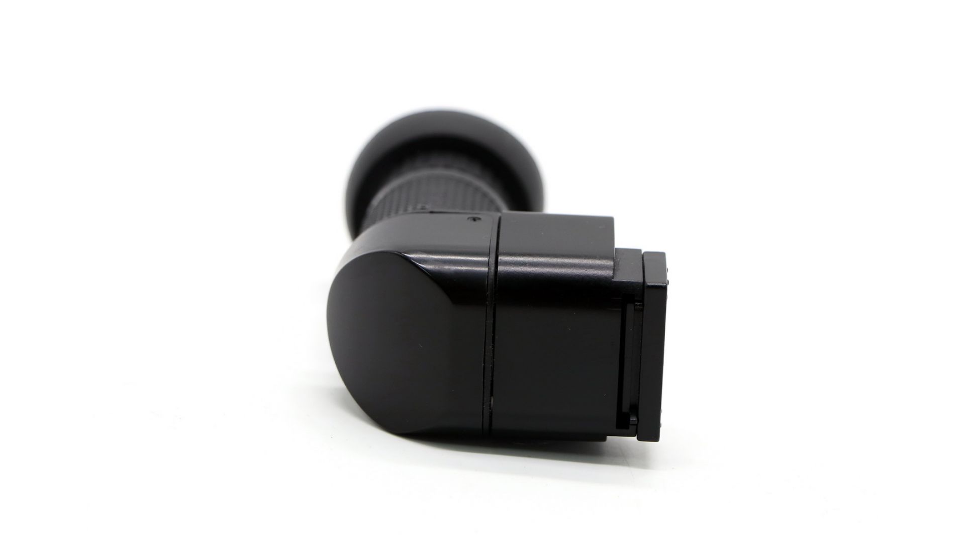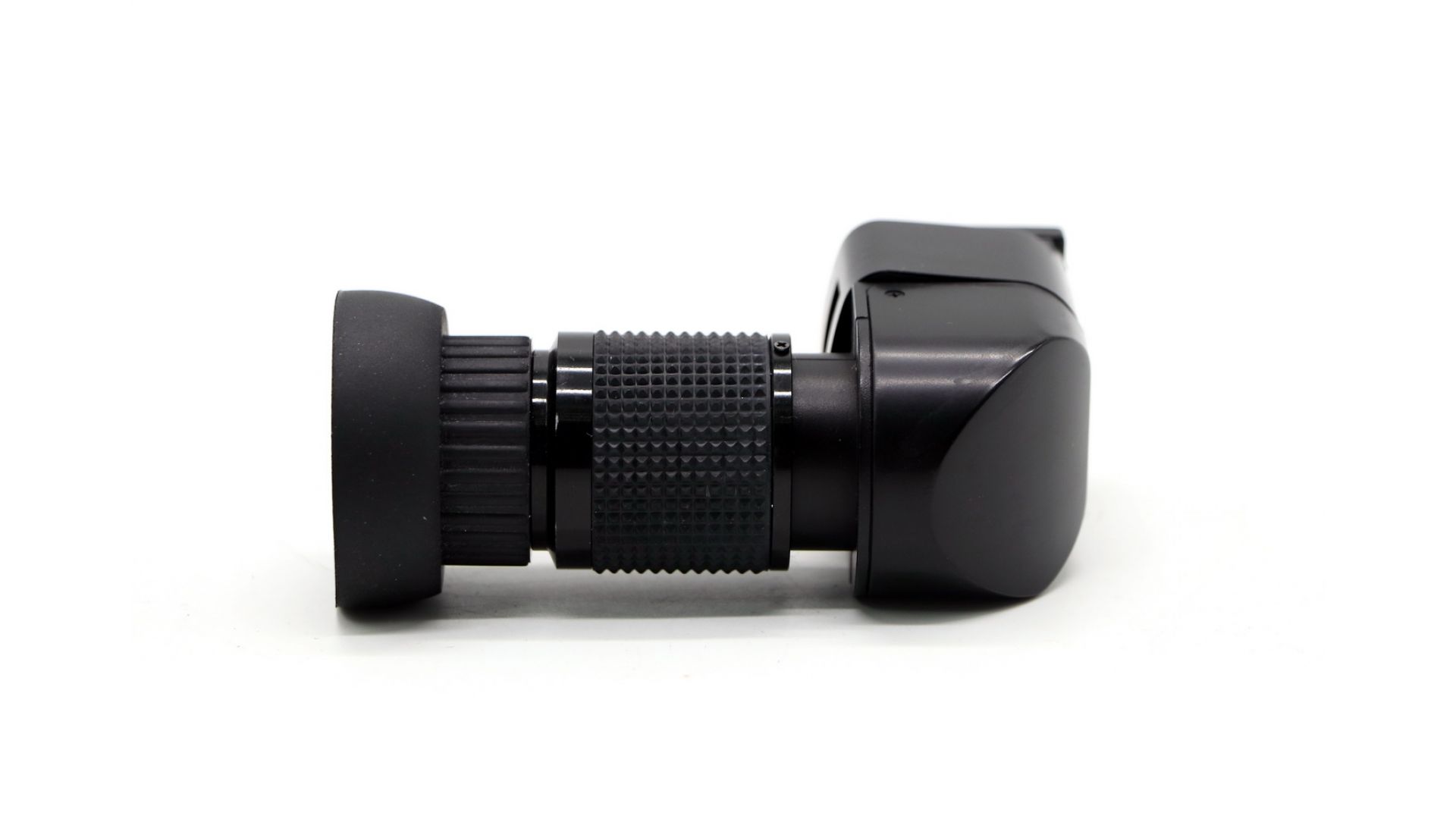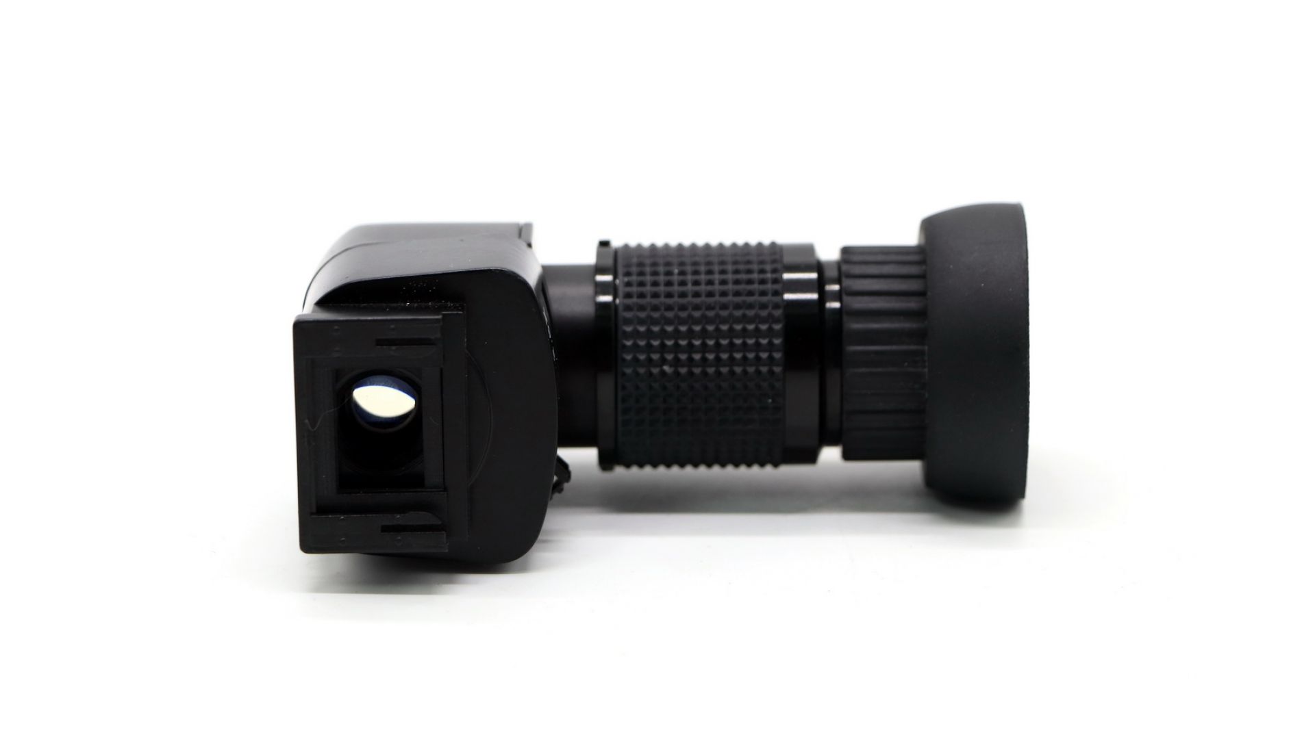 Универсальный угловой видоискатель применяется для съемочных ситуаций, когда необходимо визирование с нижней точки, пояса, репродукционных и макросъемок. Встроенный наглазник защищает от паразитного бокового света. Высококачественная оптическая увеличительная система с просветленной оптикой позволяет рассматривать центральную зону видоискателя с 2.5-кратным увеличением для контроля точности фокусировки. Оптическая схема представляет собой телескопическую насадку с призмой, поворачивающей и оборачивающей изображение: т. е. глядя в видоискатель, вы увидите прямое, а не зеркально отраженное изображение, как было бы, если бы для поворота на 90 градусов использовалось зеркало.