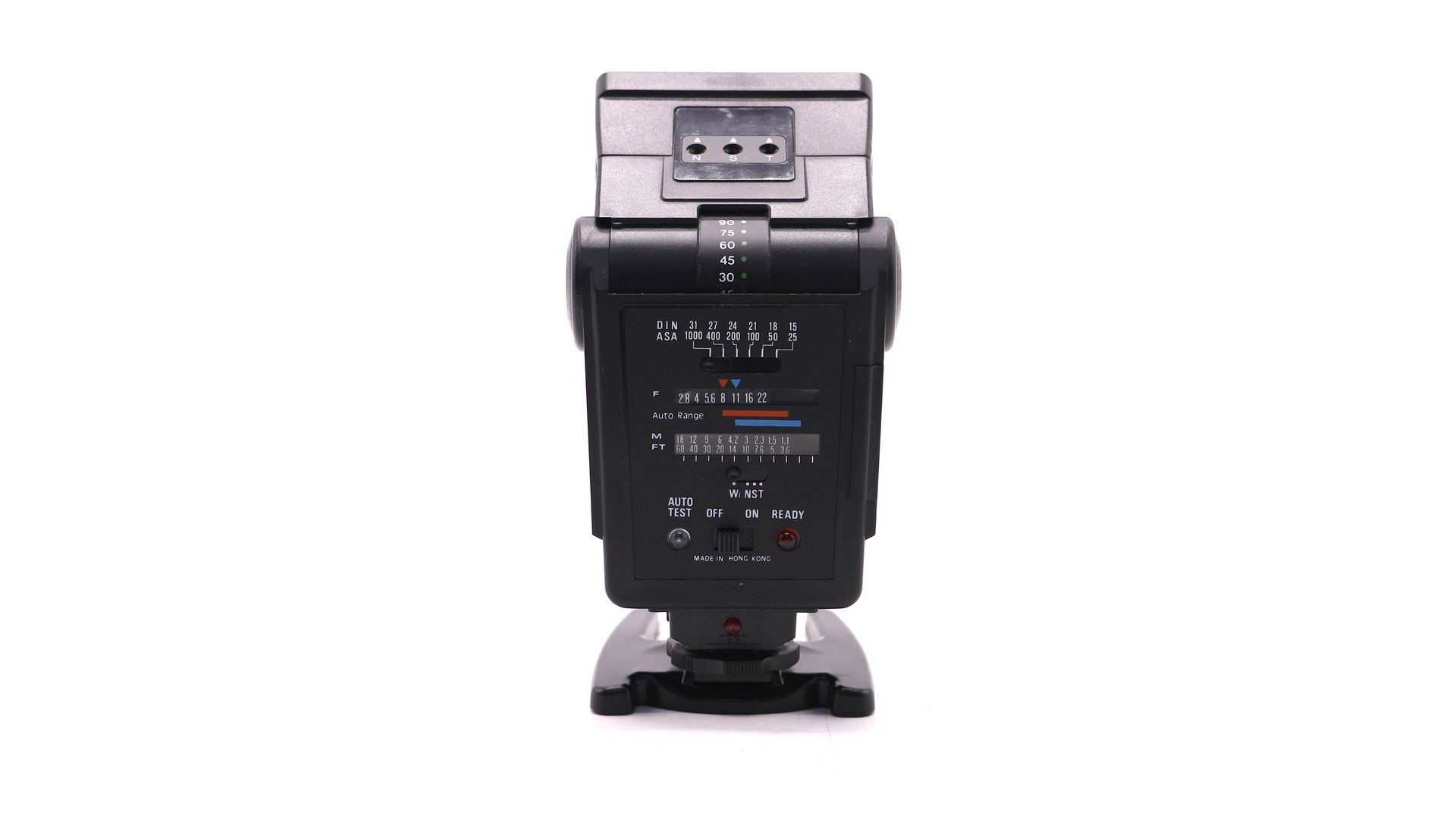 Ведущее число 38 (м, ISO 100), регулировка мощности в диапазоне 1/1–1/32. Поворотная головка (вертикаль ±90°, горизонталь 360°). Синхронизация до 1/250 с, поддержка TTL и ручного режима. Время перезарядки 2–5 с, ресурс лампы — до 50 000 импульсов.
