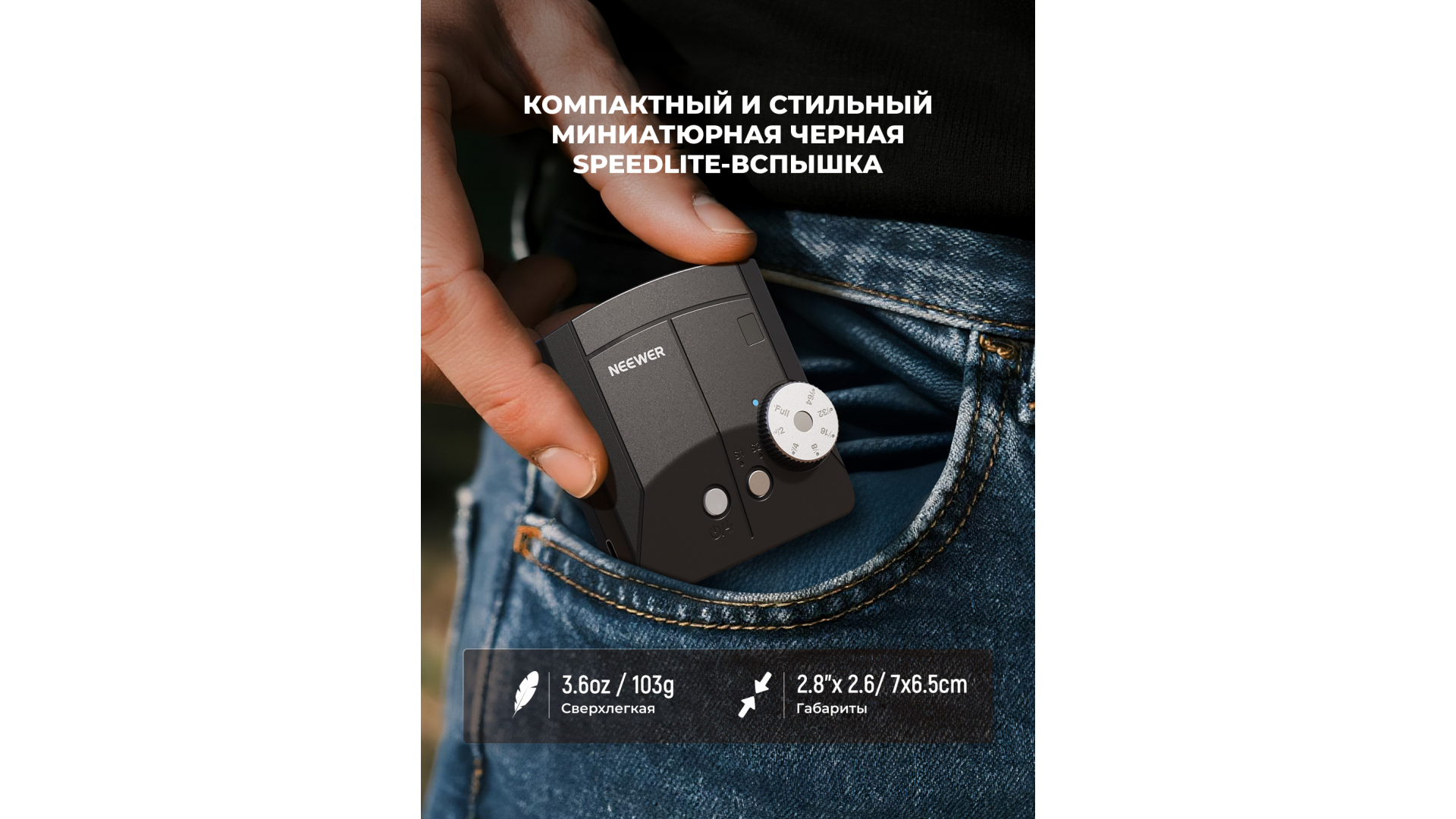 Компактная вспышка NEEWER Z150 — ваш идеальный спутник для динамичной съёмки. Её ретро-дизайн, вес всего 103 г и размеры 7x6.5 см гармонично дополняют камеру, не утяжеляя её. При скромных габаритах вспышка предлагает серьёзную мощность в 20 Вт-с (GN15), достаточную для большинства задач.