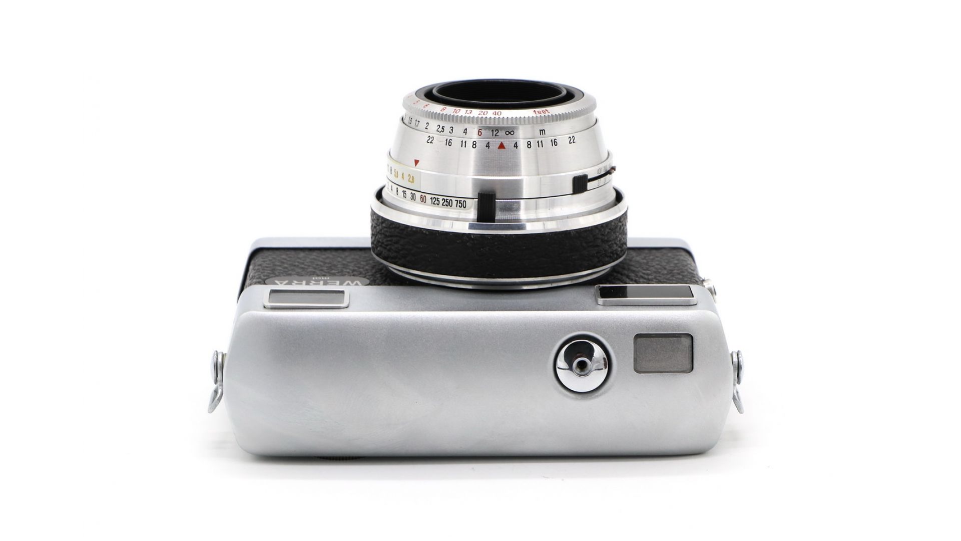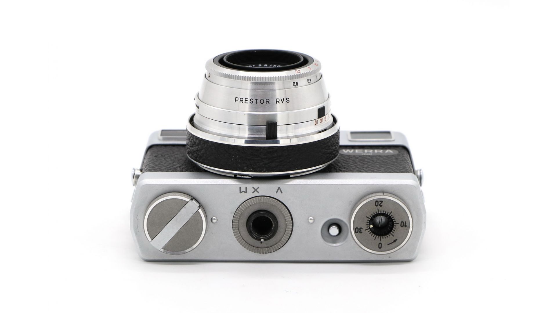 Werra - это привлекательная серия фотокамер футуристического вида, производимая с 1954 по 1967 год. Уникальной особенностью камеры является метод продвижения пленки и взвода затвора, который осуществляется путем небольшого поворота основания объектива, кольца вокруг оправы объектива. Это сделало камеру быстрой. В камере сопряженный люксметр с селеновой ячейкой, стрелка которого проецируется в видоискатель. Также в видоискателе видны настройки экспозиции.