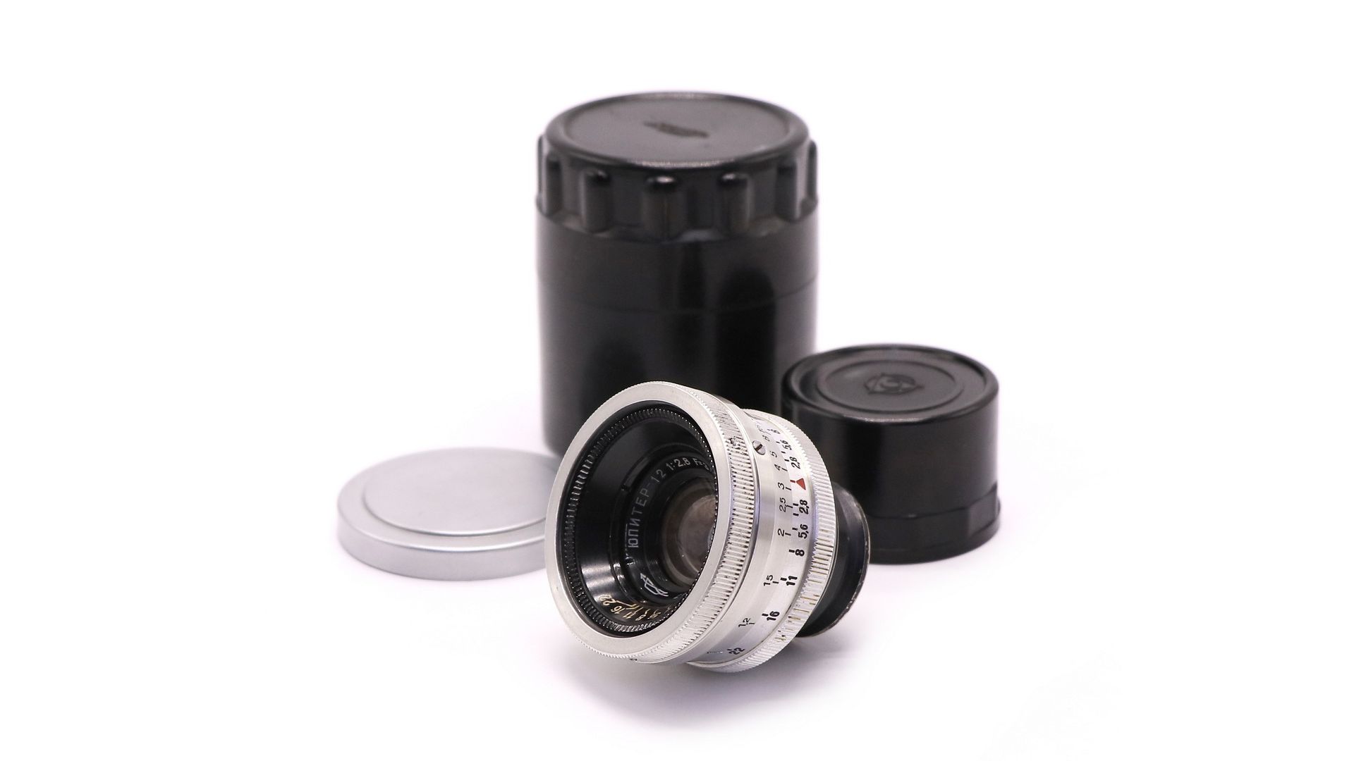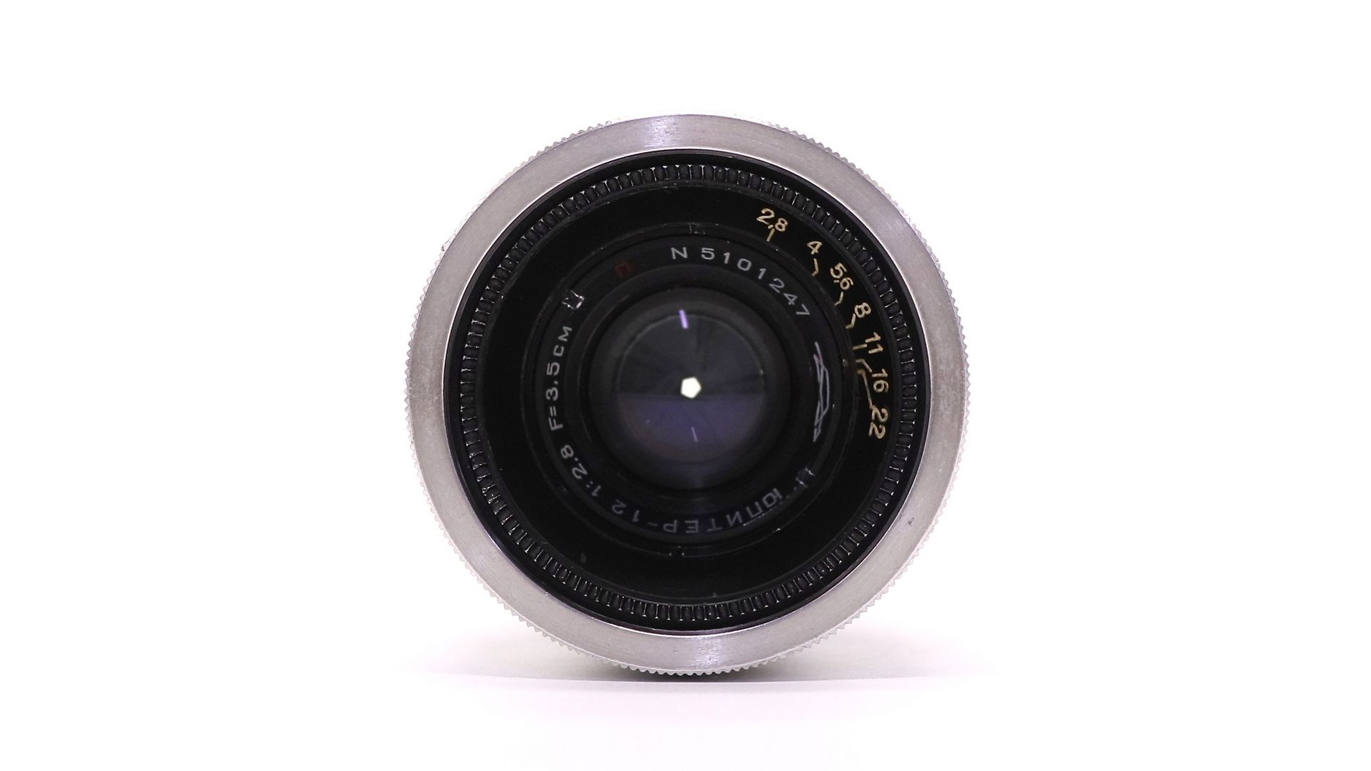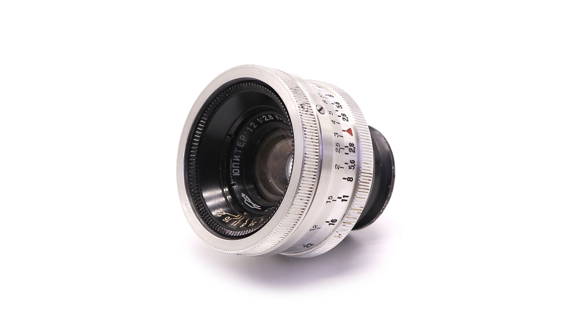 Юпитер-12 П 2.8/35 М39 silver ранний для дальномерных камер типа Фэд, Зоркий, Лейка с креплением М39. Выпущен на Лыткаринском заводом оптического стекла в 1951 году.
