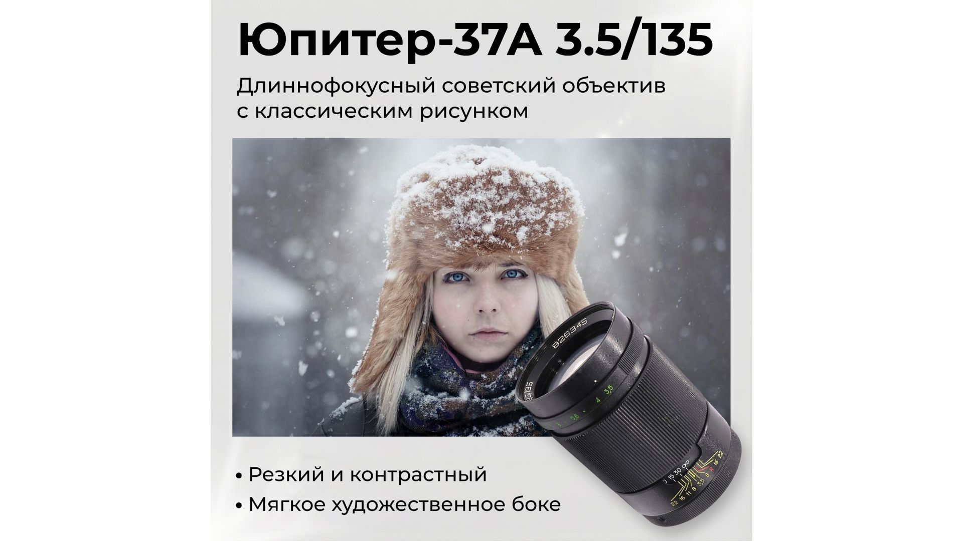 Объектив советский Юпитер-37А 3.5/135 — длиннофокусная светосильная оптика с проверенной временем схемой Sonnar, обеспечивающая резкость, контраст и естественные цвета.