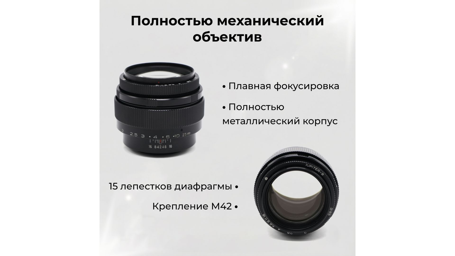 Советский длиннофокусный светосильный объектив Юпитер-9 2/85.
