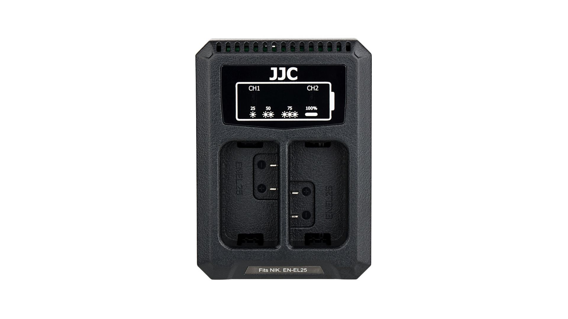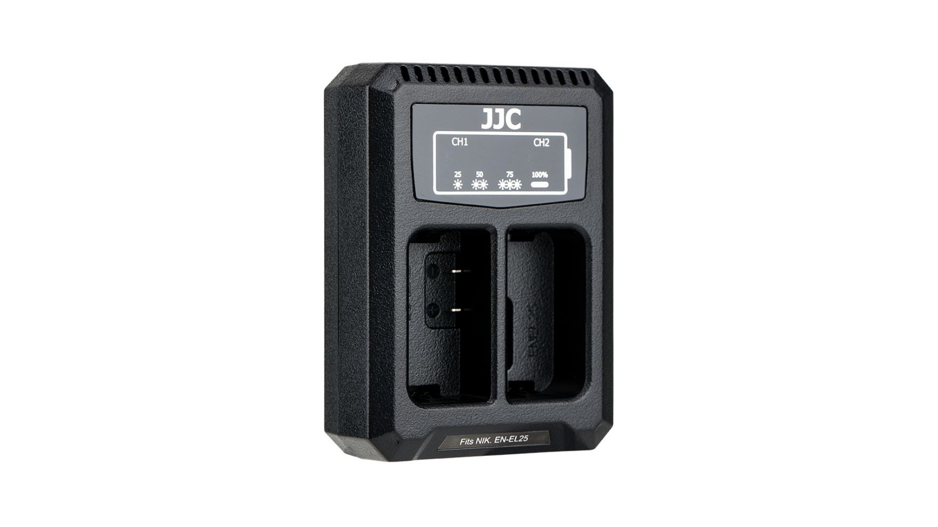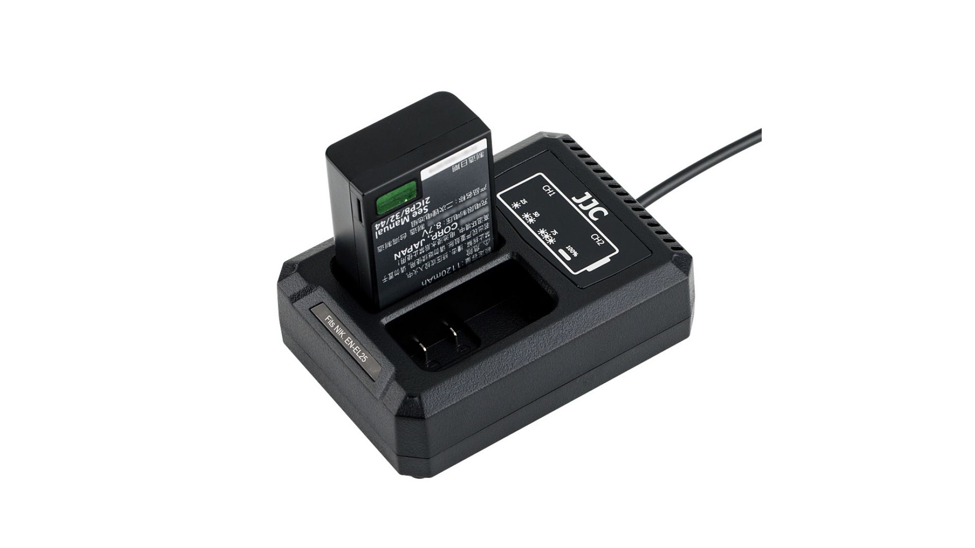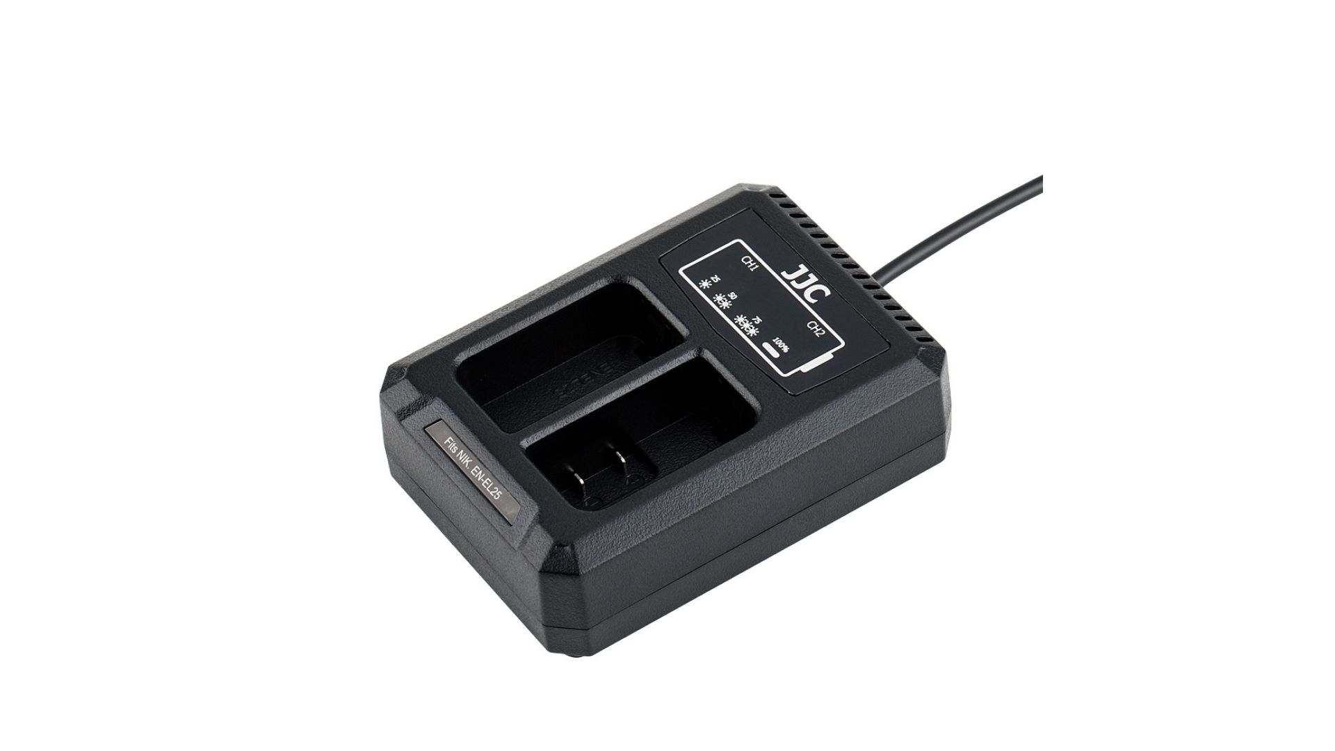 Зарядное устройство JJC DCH-ENEL25 предназначено для одновременной зарядки двух аккумуляторов Nikon EN-EL25. Оснащено встроенным USB-кабелем, что делает его удобным для использования дома, в офисе или в поездке. Компактный и лёгкий корпус удобно брать с собой. Индикаторы заряда отображают текущий уровень батарей, обеспечивая контроль процесса. Вход: DC 5V / 2.2A, выход: DC 8.4V / 600mA. Подключается через USB, совместим с адаптерами, пауэрбанками и другими источниками питания. Надёжное и практичное решение для владельцев камер Nikon серии Z с аккумуляторами EN-EL25.