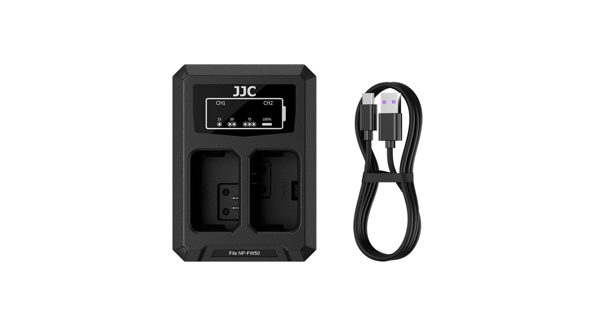 Комплектация:Зарядное устройство JJC DCH-FW50TC, кабель Type-C-USB-A