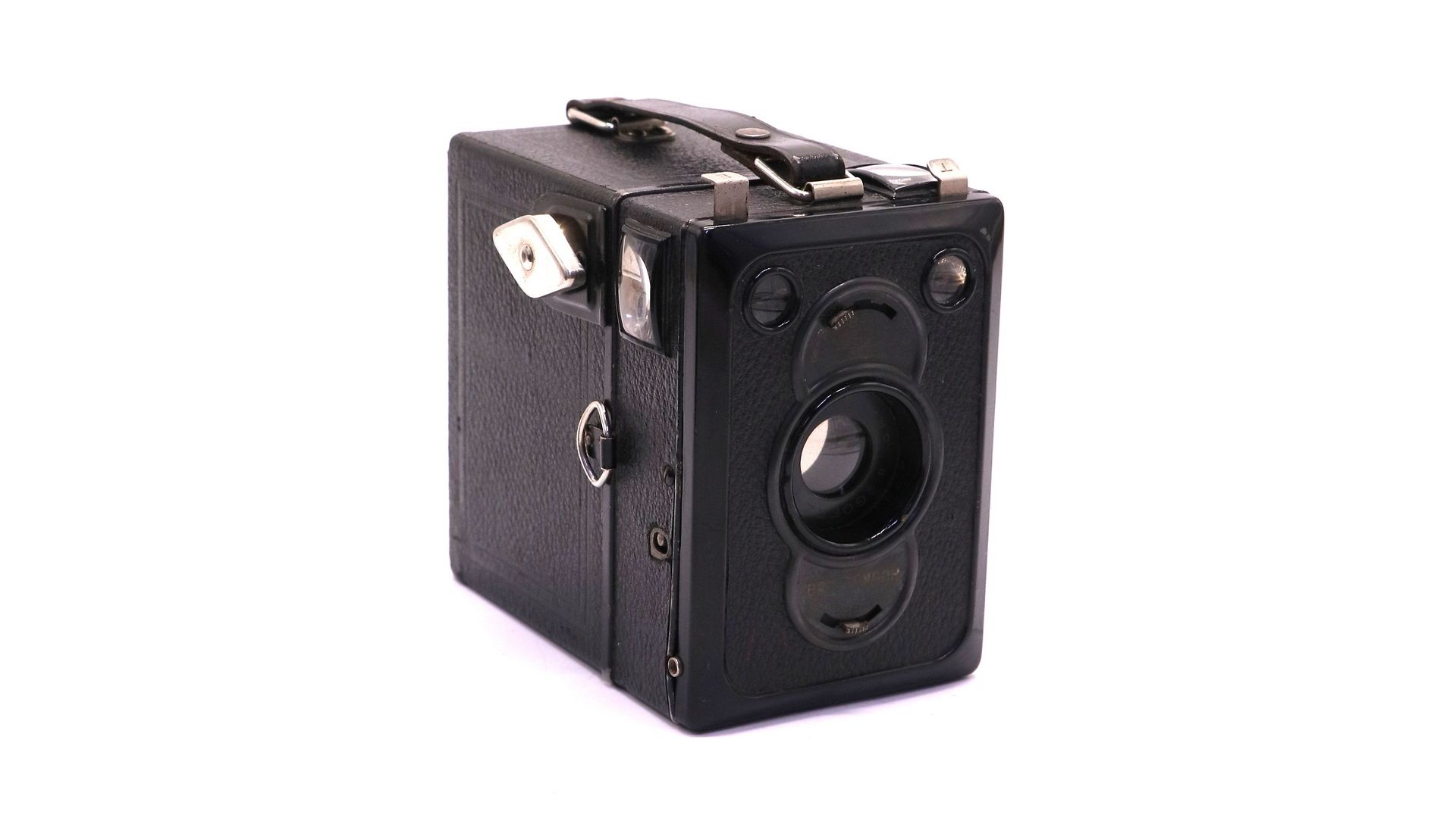 Довоенный фотоаппарат Zeiss Ikon Box Tengor 54/2. Произведен компанией Zeiss Ikon в 1934 году. Box Tengor модель 54/2 — фотоаппарат коробочного типа для начинающих. Формат плёнки 120 мм, формат кадра 6х9 см. Фотоаппарат имеет два оптических видоискателя на вертикальную и на боковую проекцию, сбоку ручка для перемотки плёнки и запорная ручка для открытия-закрытия задней крышки, а также смотровое окошко номера кадра на задней крышке. Объектив Goerz Frontar 11/100, диафрагма 11, 16 и 22, затвор Box-Tengor лепесткового типа с синхронизацией со вспышкой, одна выдержка 1/30 сек.,размер 10,5х7,5х11 см. Отличный экземпляр для коллекции или творческих экспериментов.