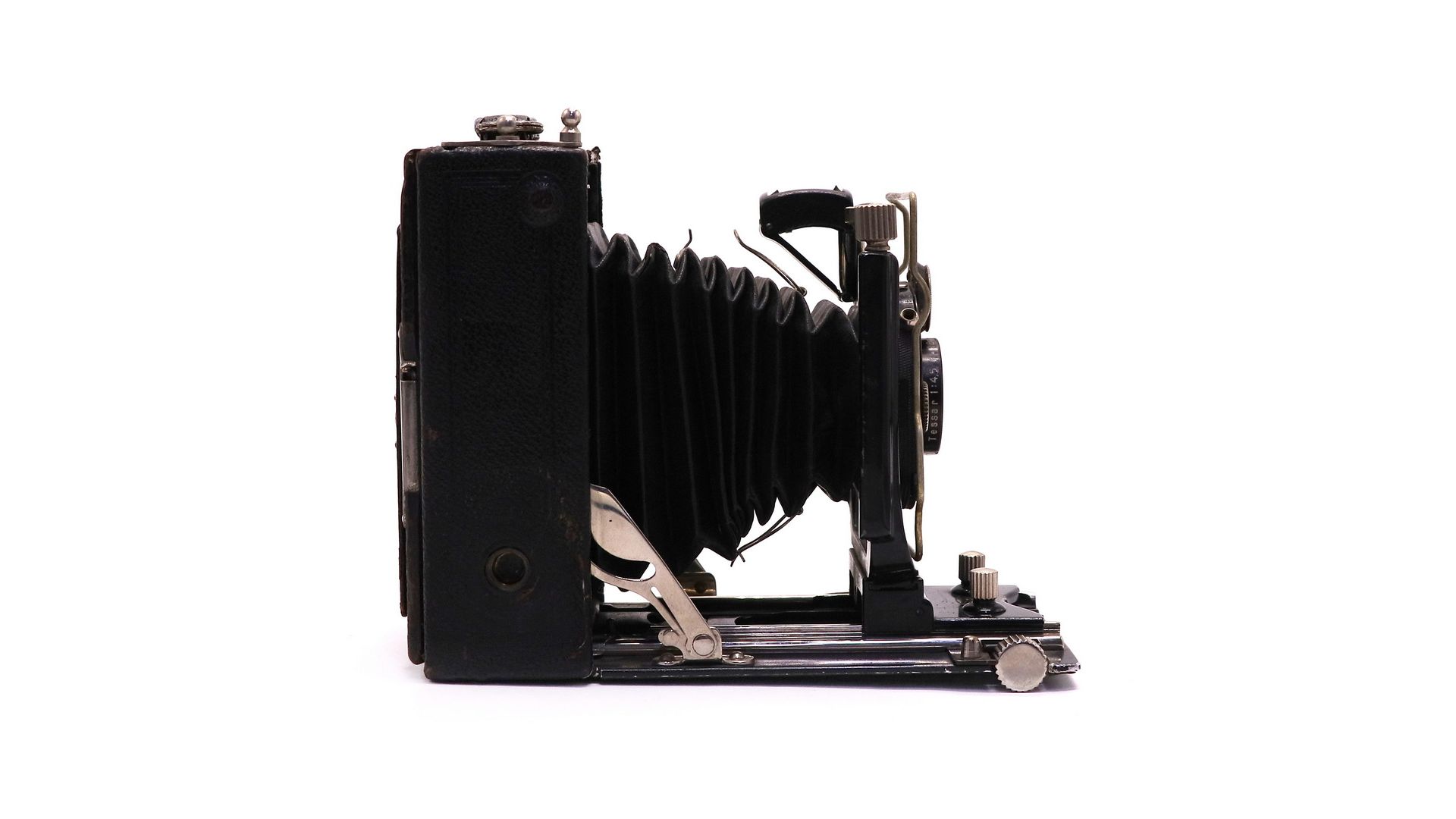 объектив: качественный анастигмат (точная модель зависит от года выпуска) — чёткое изображение с характерным винтажным рисунком;