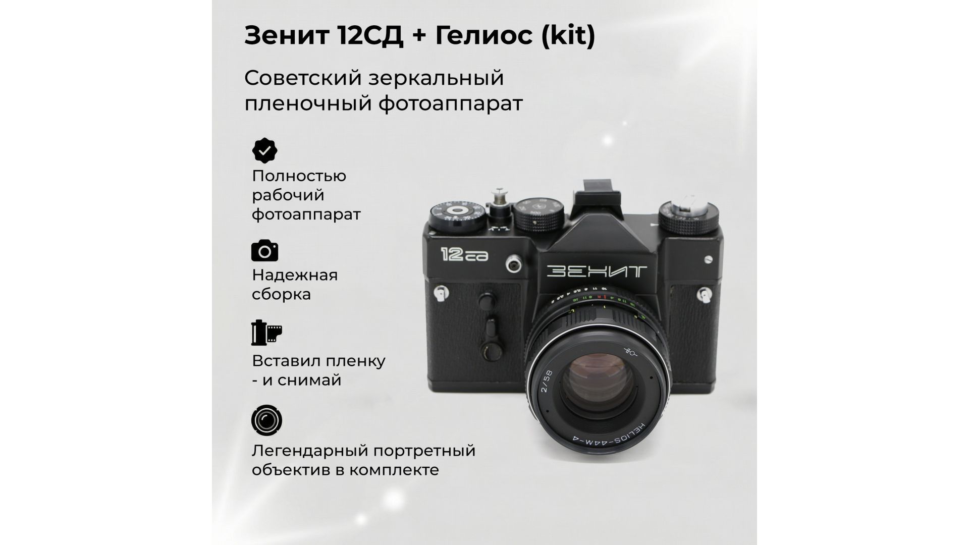 Комплектация:Объектив Гелиос в ассортименте.