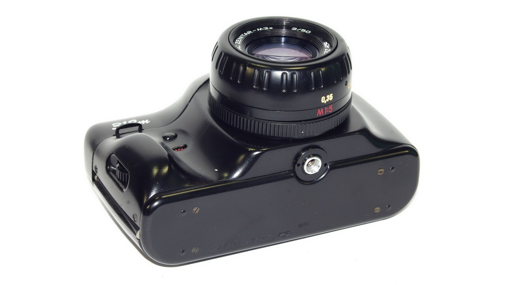 Надёжный механический шторно-щелевой затвор с выдержками от 1/30 до 1/500 с и «B». Крепление М42×1 для совместимости с огромным парком советской оптики. Объектив Зенитар М2s с отличной резкостью и характерным рисунком.