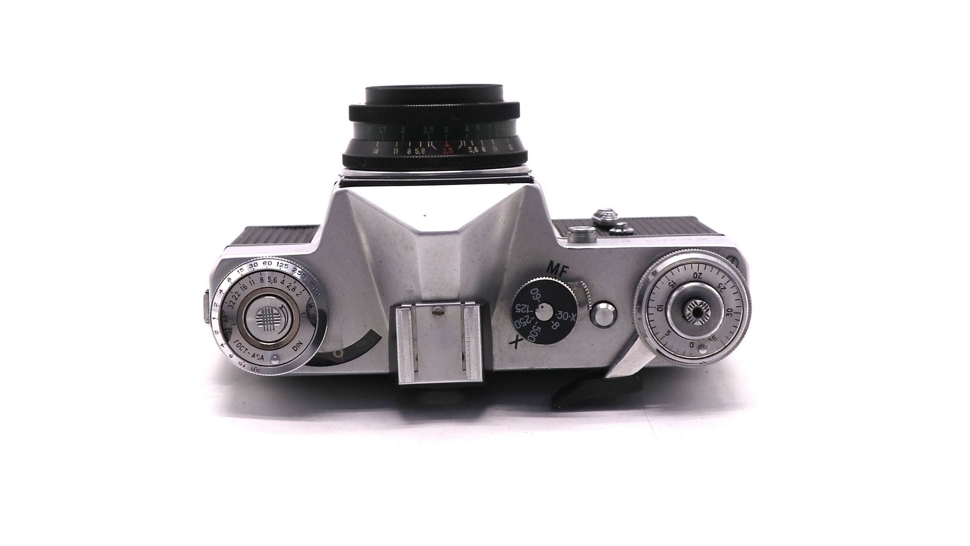 – Технические преимущества: механический затвор с выдержками от 1 с до 1/500 с, резьбовое крепление М42, ручной экспозамер (по шкале или внешнему экспонометру), фокусировочный экран с микрорастром.