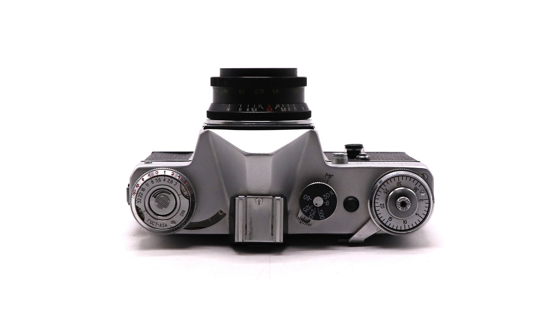 Встроенный несопряжённый экспонометр с селеновым фотоэлементом — удобно при работе с цветной плёнкой