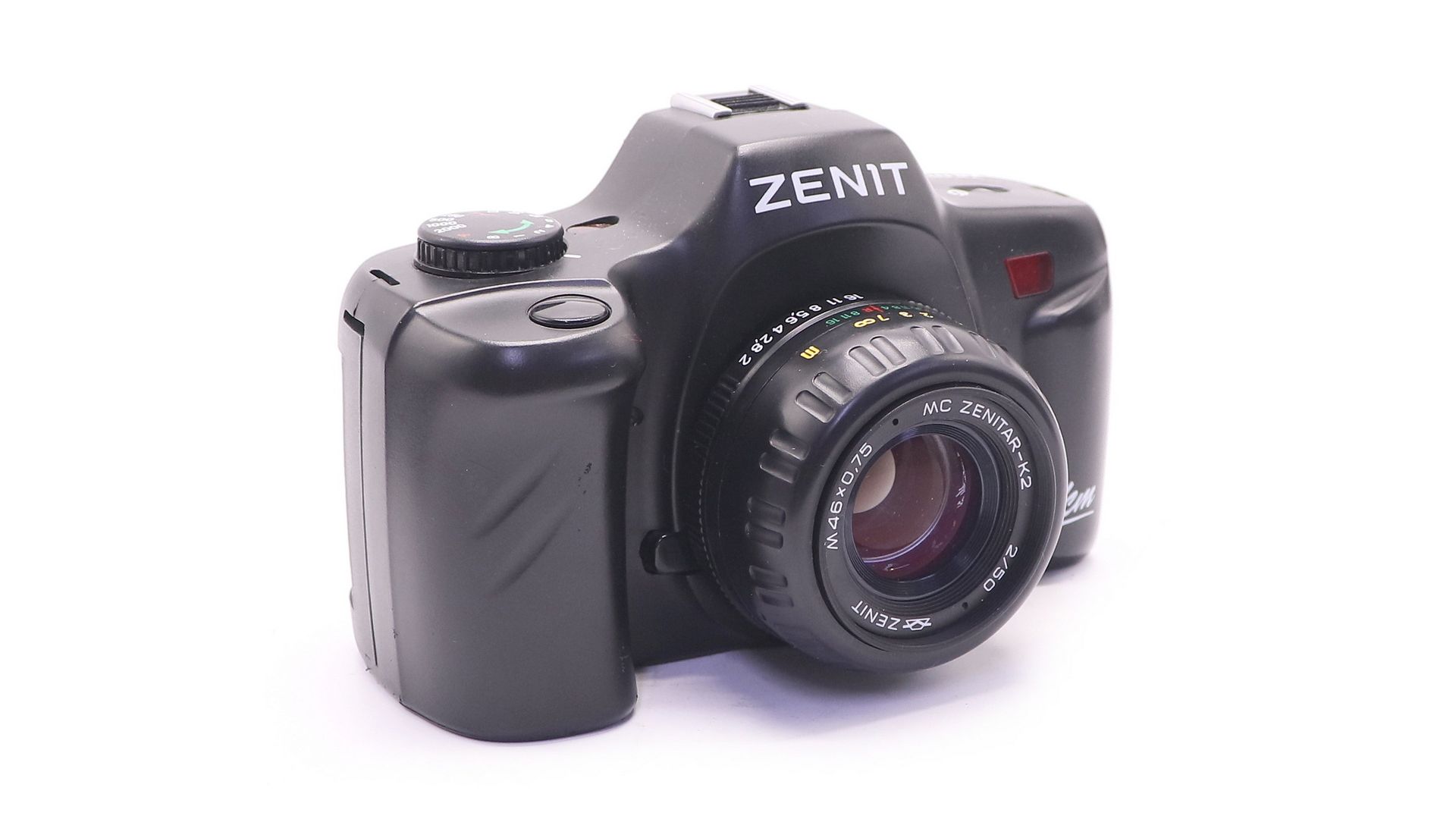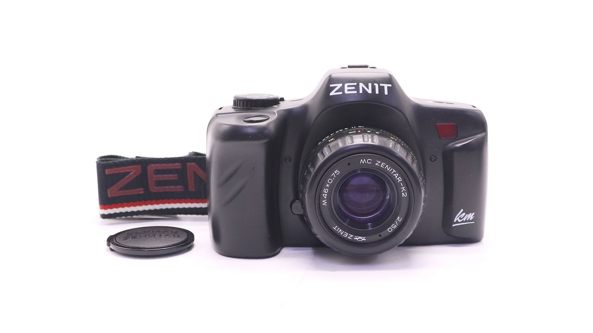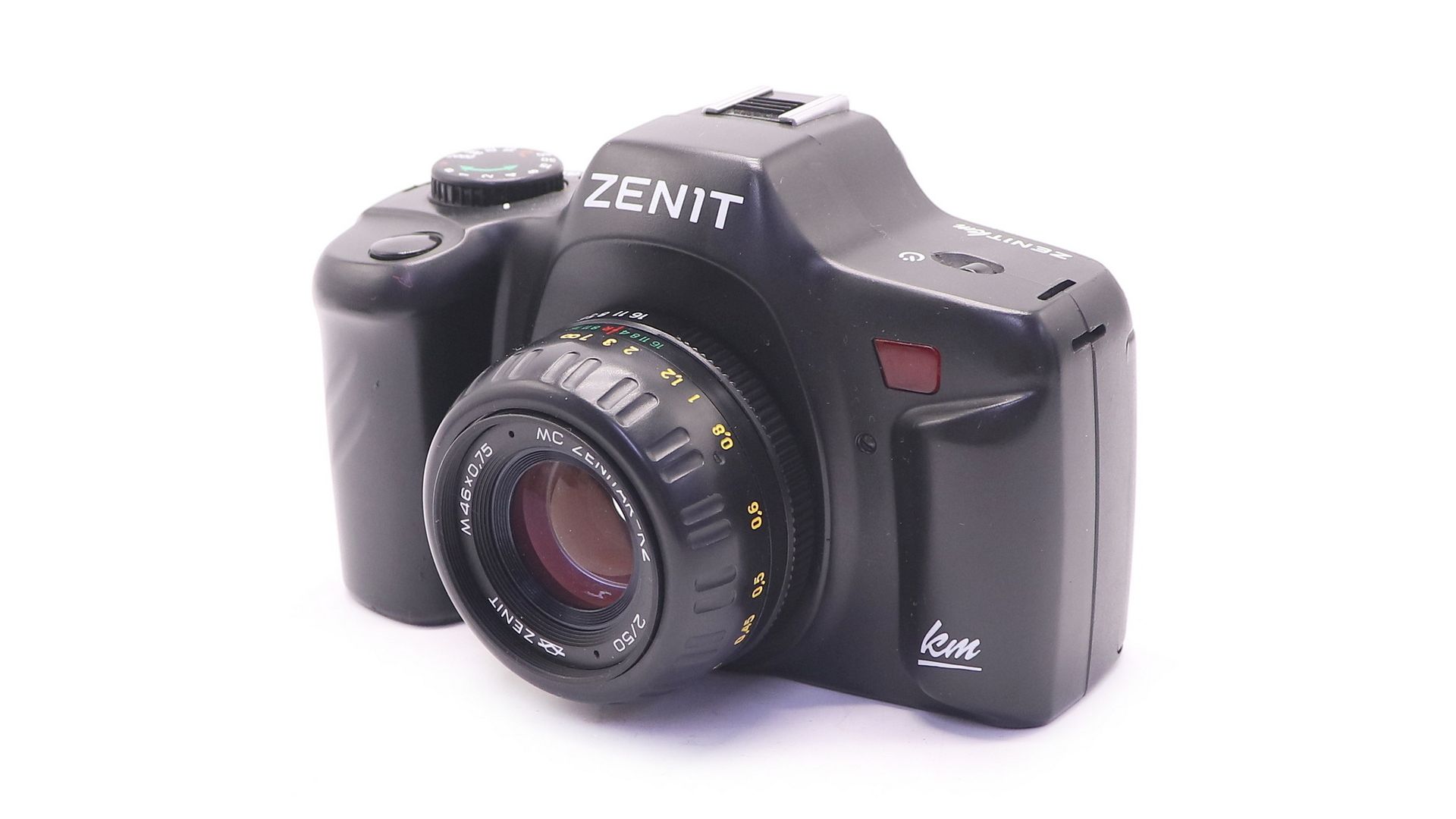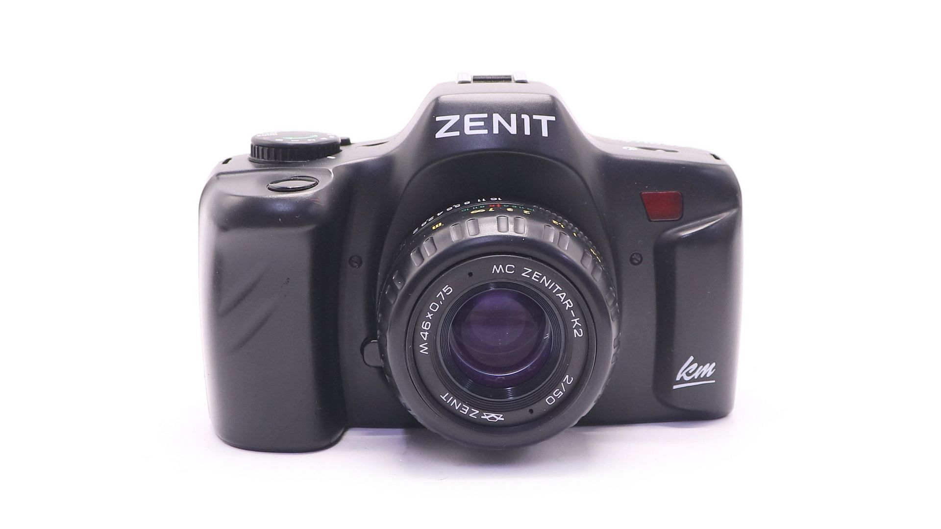 Зенит КМ - пленочная зеркальная камера 2001-2005 года в пластмассовом корпусе. Последний плёночный фотоаппарат марки «Зенит». Всего было выпущено 15.097 фотоаппаратов.