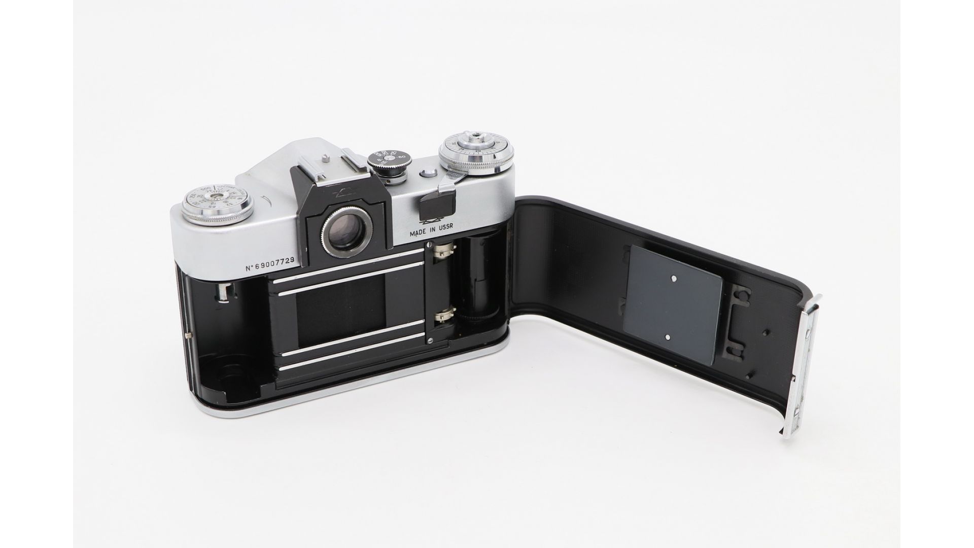 Экземпляр имеет алюминиевый корпус с открывающейся задней стенкой и счётчик кадров с ручной установкой первого кадра. Эта модель также оснащена курковым взводом затвора и перемотки плёнки. Выдержки затвора — от 1/30 до 1/500 сек, «B» и длительная. Выдержка синхронизации с лампами-вспышками — 1/30 с. Фотоматериал - типа 135, размер кадра 24×36 мм.