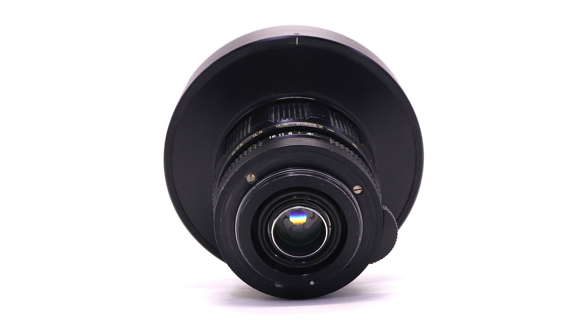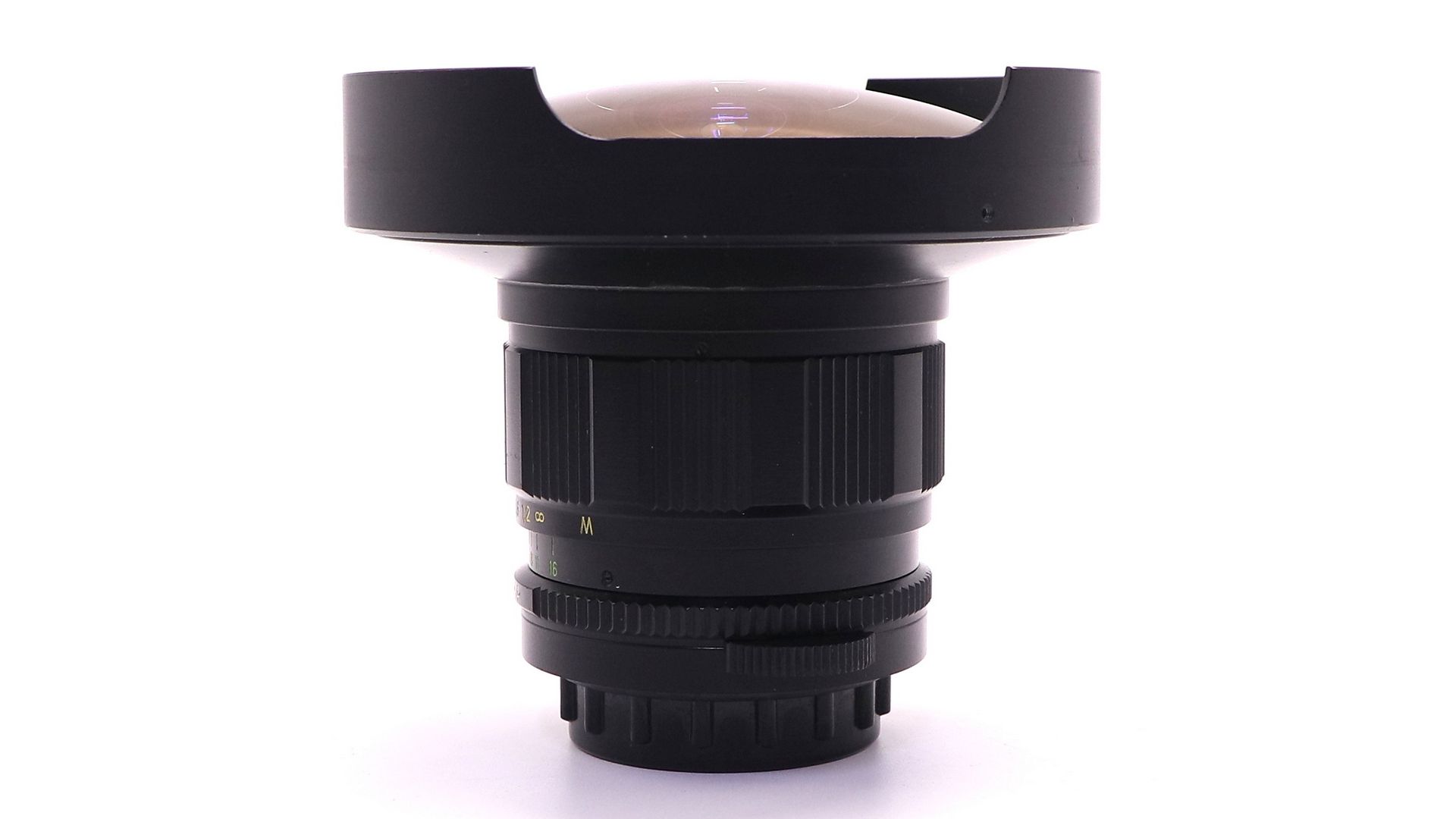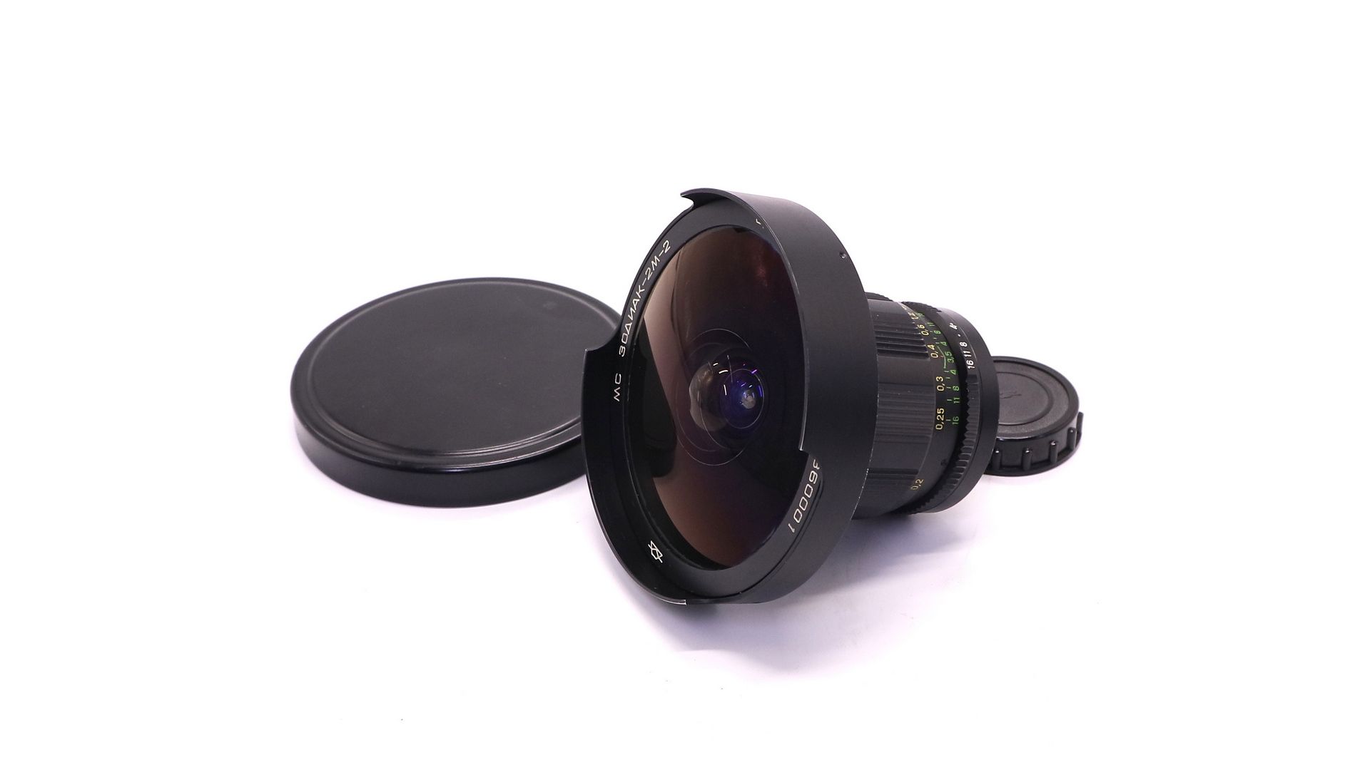 Крайне редкий объектив для малоформатных зеркальных фотоаппаратов с резьбовым присоединением сменной оптики. Снабжен ирисовой автоматизированной отключаемой диафрагмой. Многослойное просветление. Угол поля зрения - 180°, количество линз/групп - 9/5, пределы шкалы диафрагм: 1:3,5 - 1:16, ближний предел фокусировки: 0,2 м. Разрешающая способность по ТУ (центр/край) - 48/18 линий/мм. Присоединительная резьба - М42х1, резьба для ввинчивающихся насадок - M28x0,75, расположение светофильтра заднее. Габаритные размеры: длина объектива - 103 мм, наибольший диаметр оправы - 90 мм. Формат кадра - 24x36