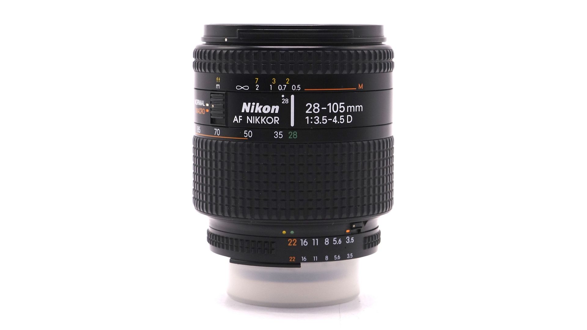 Объектив имеет систему Close Range Correction (корректировку при близких дистанциях фокусировки), что позволяет получать качественные снимки в макро режиме. Объектив имеет внутреннюю фокусировку, но при зумировании передняя линза вращается. В отличии от многих других специализированных макро объективов, скорости фокусировки в макро режиме достаточно для удобной работы. Диафрагма объектива имеет необычные максимальные параметры от F/3.5 до F/4.5. Диафрагменное число F/5.6 в 1,55 раз ‘темнее’ чем F/4.5. Объектив имеет 9-ти лепестковую диафрагму, которая позволяет формировать достаточно ровные диски в зоне нерезкости. Nikon 28-105mm 3,5-4.5 D AF Nikkor очень хорошо передает контраст, имеет отличную цветопередачу, не боится бокового и контрового света.